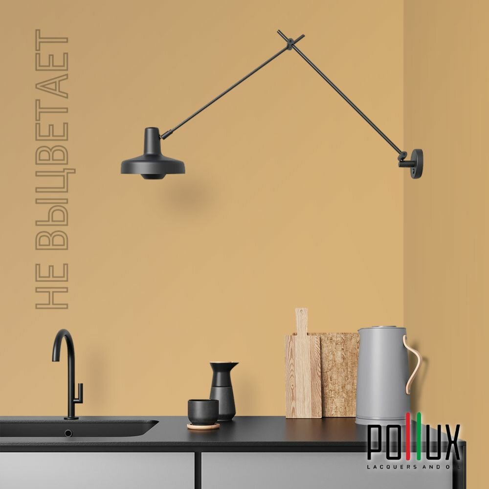 Краска моющаяся интерьерная для стен и потолков, Pollux INTERIOR без запаха, быстросохнущая, акриловая, матовое покрытие, цвет NCS S 6030-Y20R, 1л.