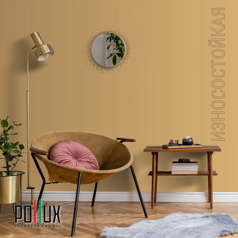 Краска моющаяся интерьерная для стен и потолков, Pollux INTERIOR без запаха, быстросохнущая, акриловая, матовое покрытие, цвет NCS S 0585-Y20R, 1л.