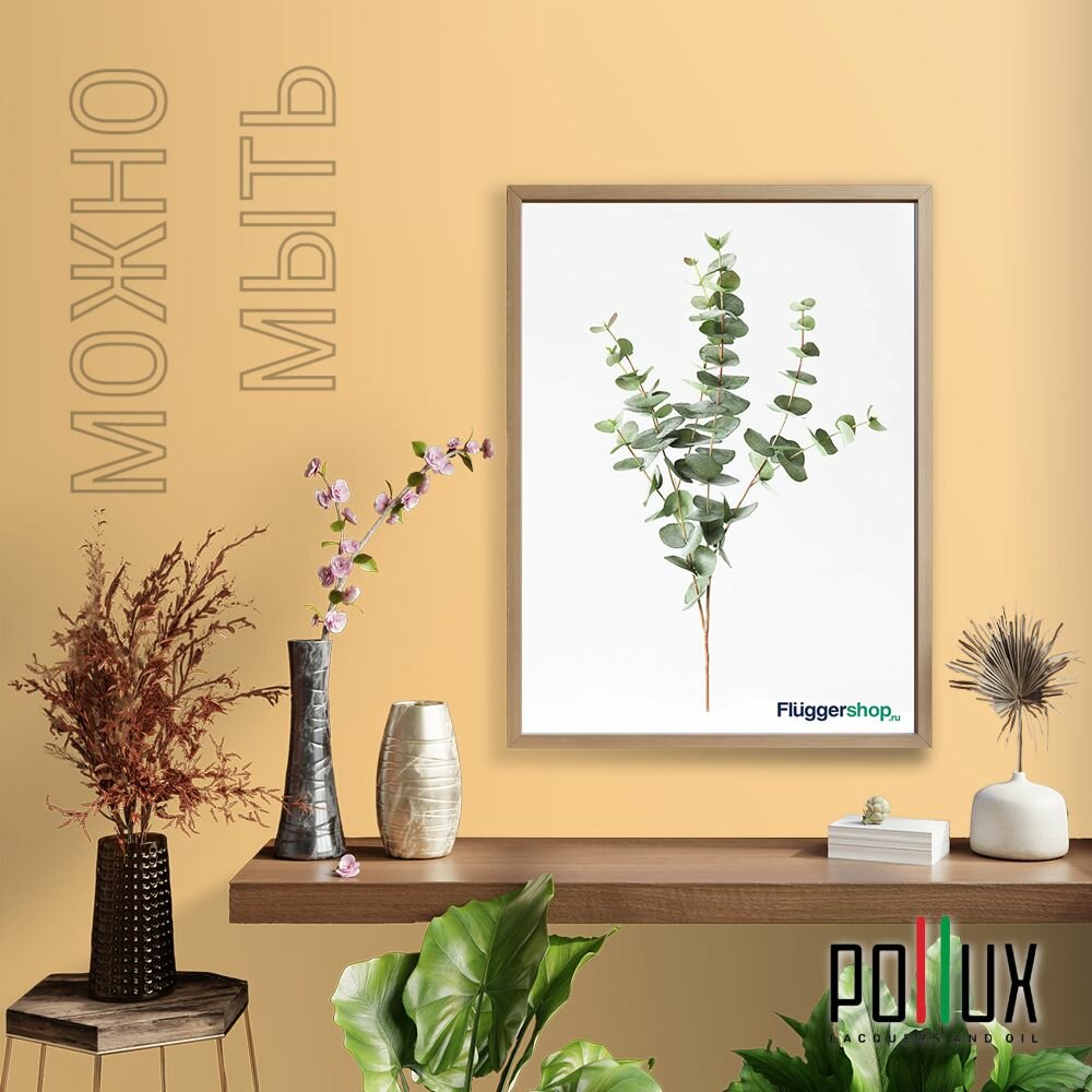 Краска моющаяся интерьерная для стен и потолков, Pollux INTERIOR без запаха, быстросохнущая, акриловая, матовое покрытие, цвет NCS S 1080-Y20R, 1л.