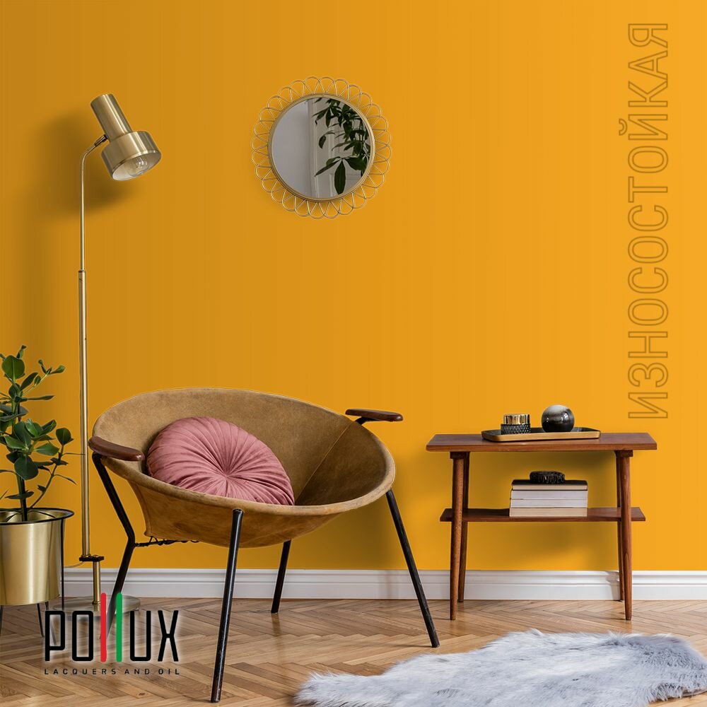 Краска моющаяся интерьерная для стен и потолков, Pollux INTERIOR без запаха, быстросохнущая, акриловая, матовое покрытие, цвет NCS S 0585-Y20R, 1л.