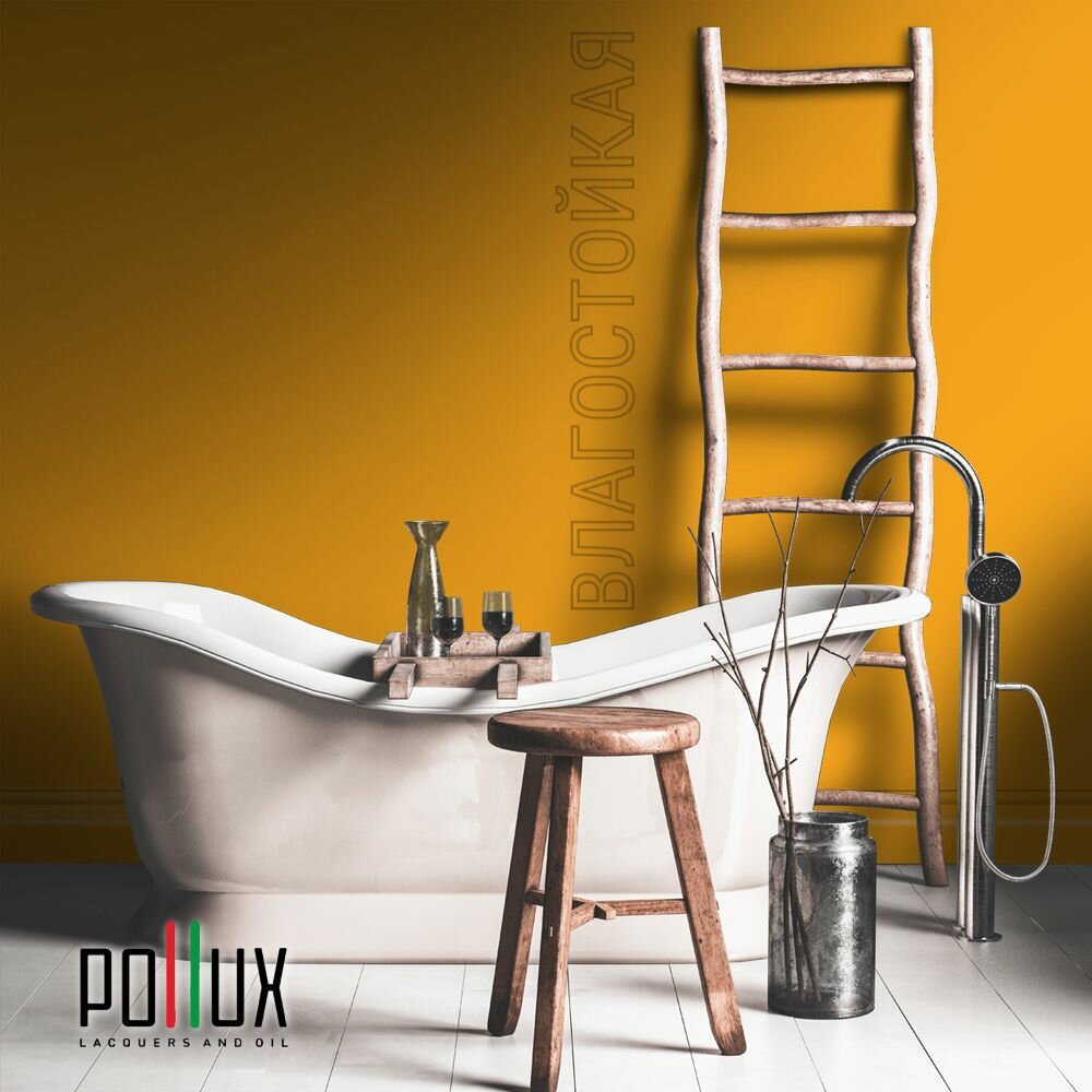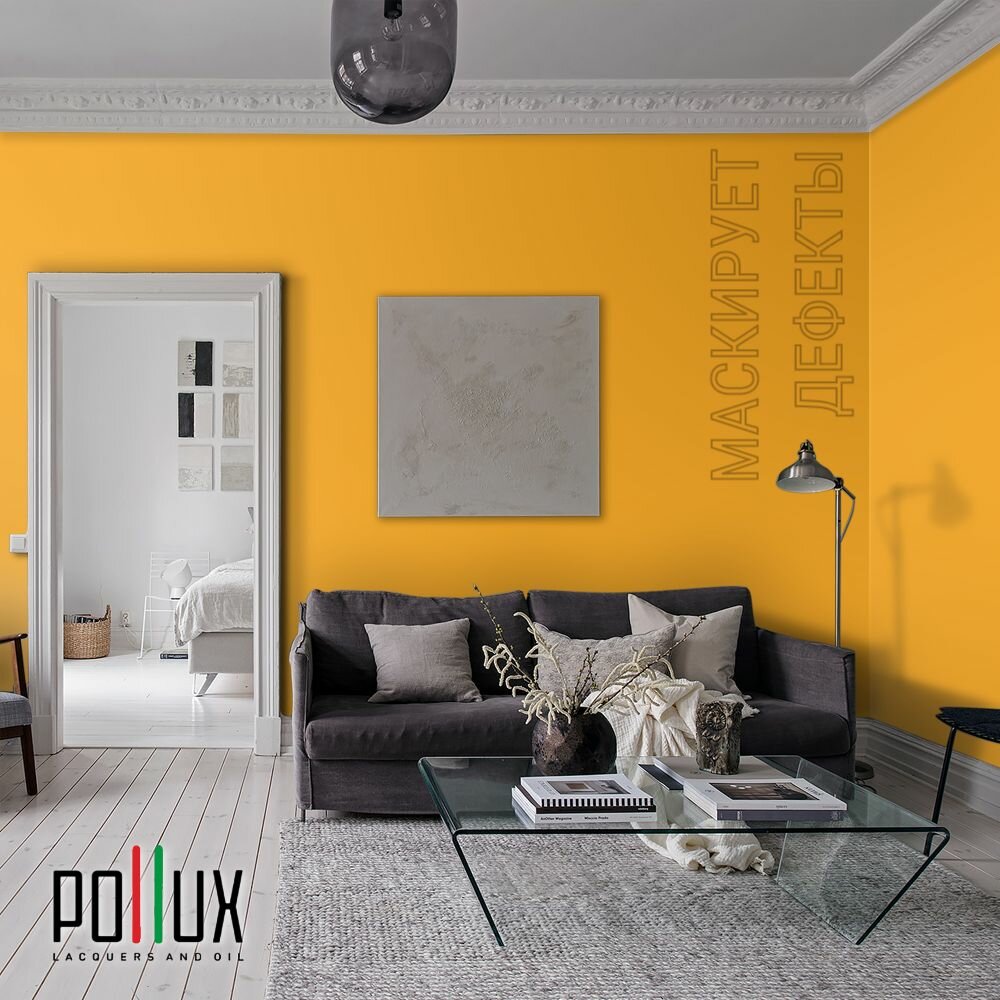 Краска моющаяся интерьерная для стен и потолков, Pollux INTERIOR без запаха, быстросохнущая, акриловая, матовое покрытие, цвет NCS S 1080-Y20R, 1л.