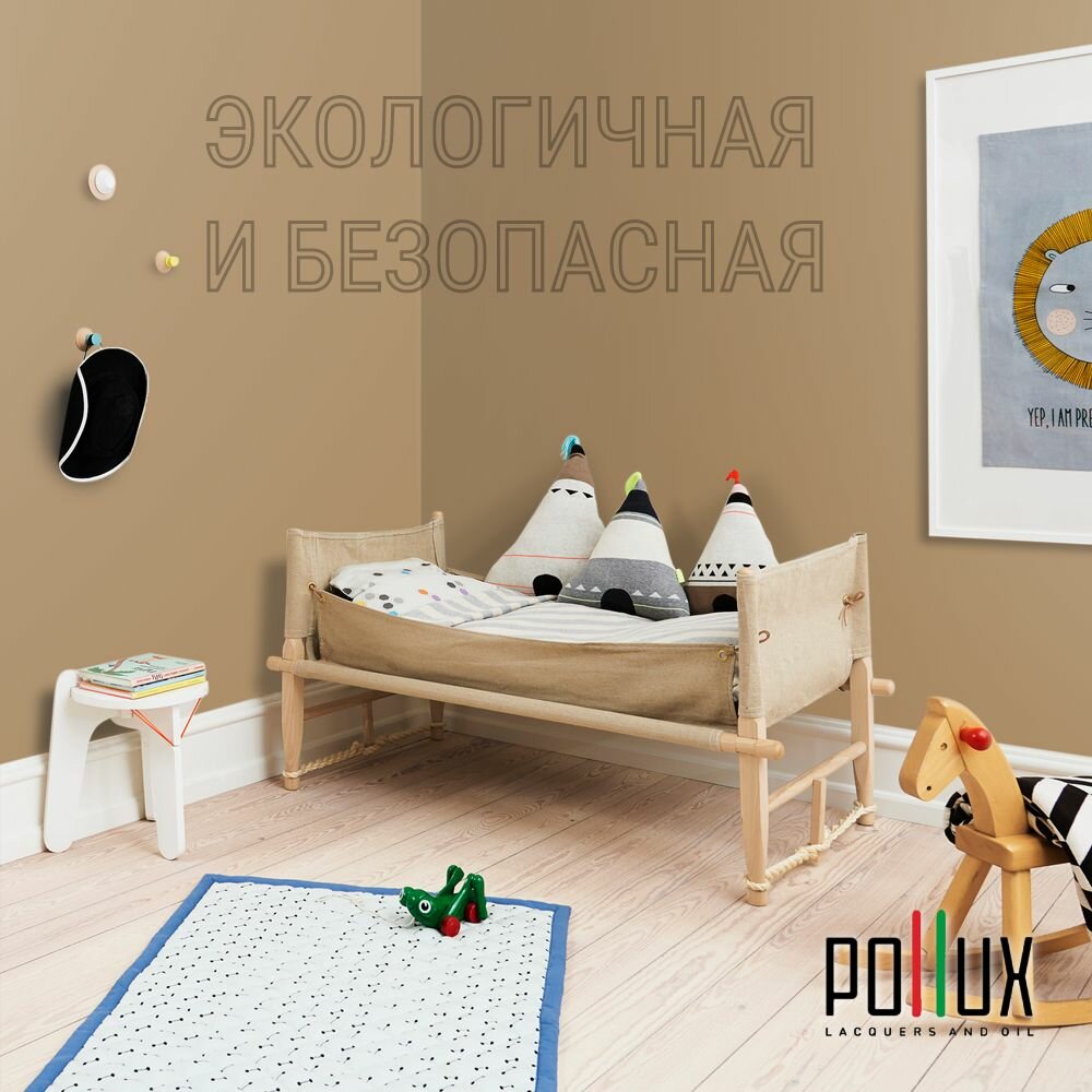 Краска моющаяся интерьерная для стен и потолков, Pollux INTERIOR без запаха, быстросохнущая, акриловая, матовое покрытие, цвет NCS S 4050-Y20R, 1л.