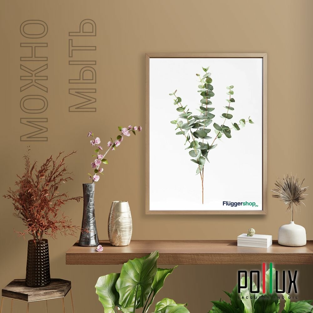 Краска моющаяся интерьерная для стен и потолков, Pollux INTERIOR без запаха, быстросохнущая, акриловая, матовое покрытие, цвет NCS S 4005-Y20R, 1л.