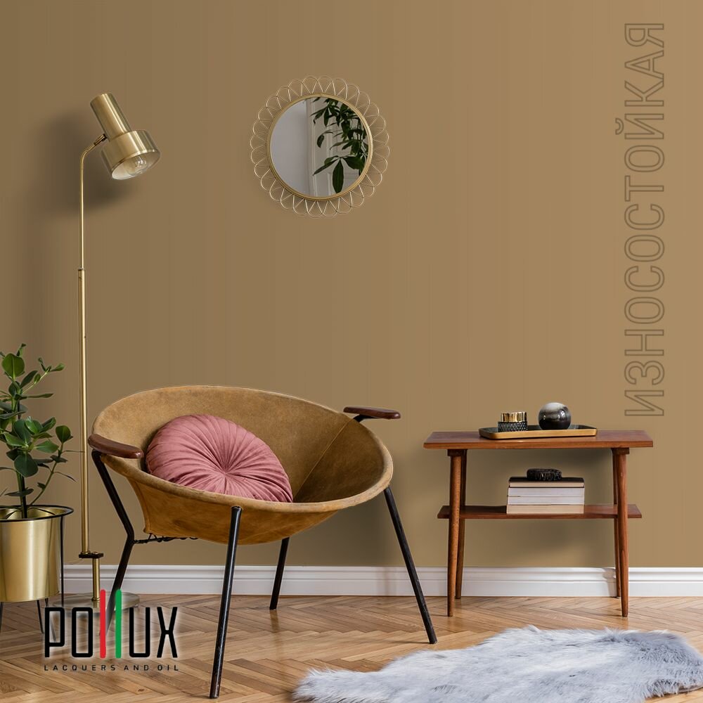 Краска моющаяся интерьерная для стен и потолков, Pollux INTERIOR без запаха, быстросохнущая, акриловая, матовое покрытие, цвет NCS S 0585-Y20R, 1л.