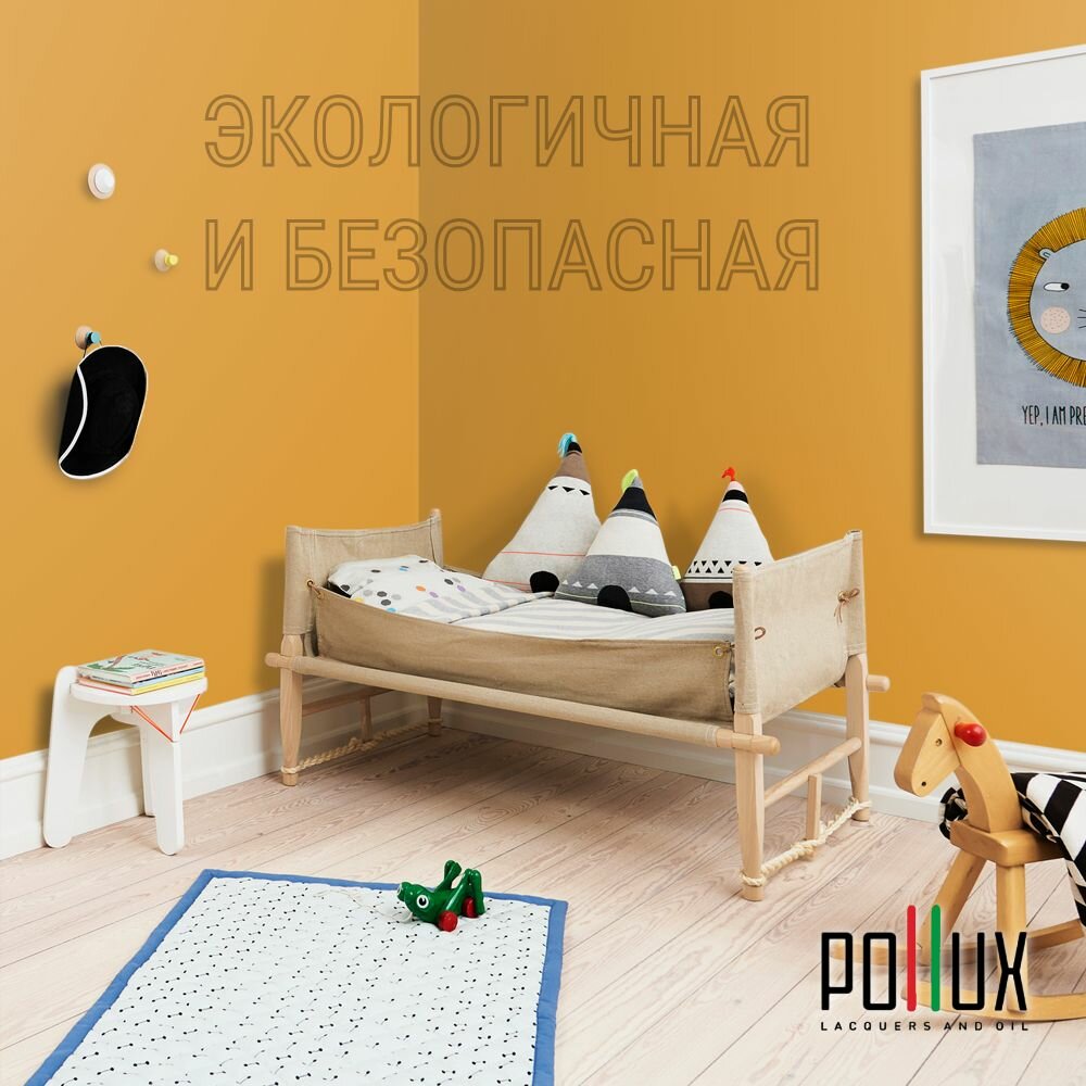 Краска моющаяся интерьерная для стен и потолков, Pollux INTERIOR без запаха, быстросохнущая, акриловая, матовое покрытие, цвет NCS S 1080-Y20R, 1л.