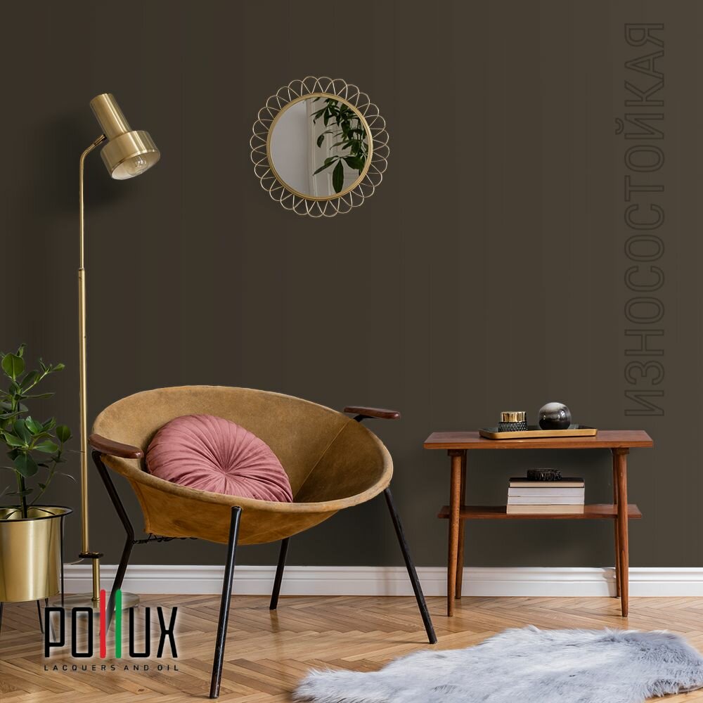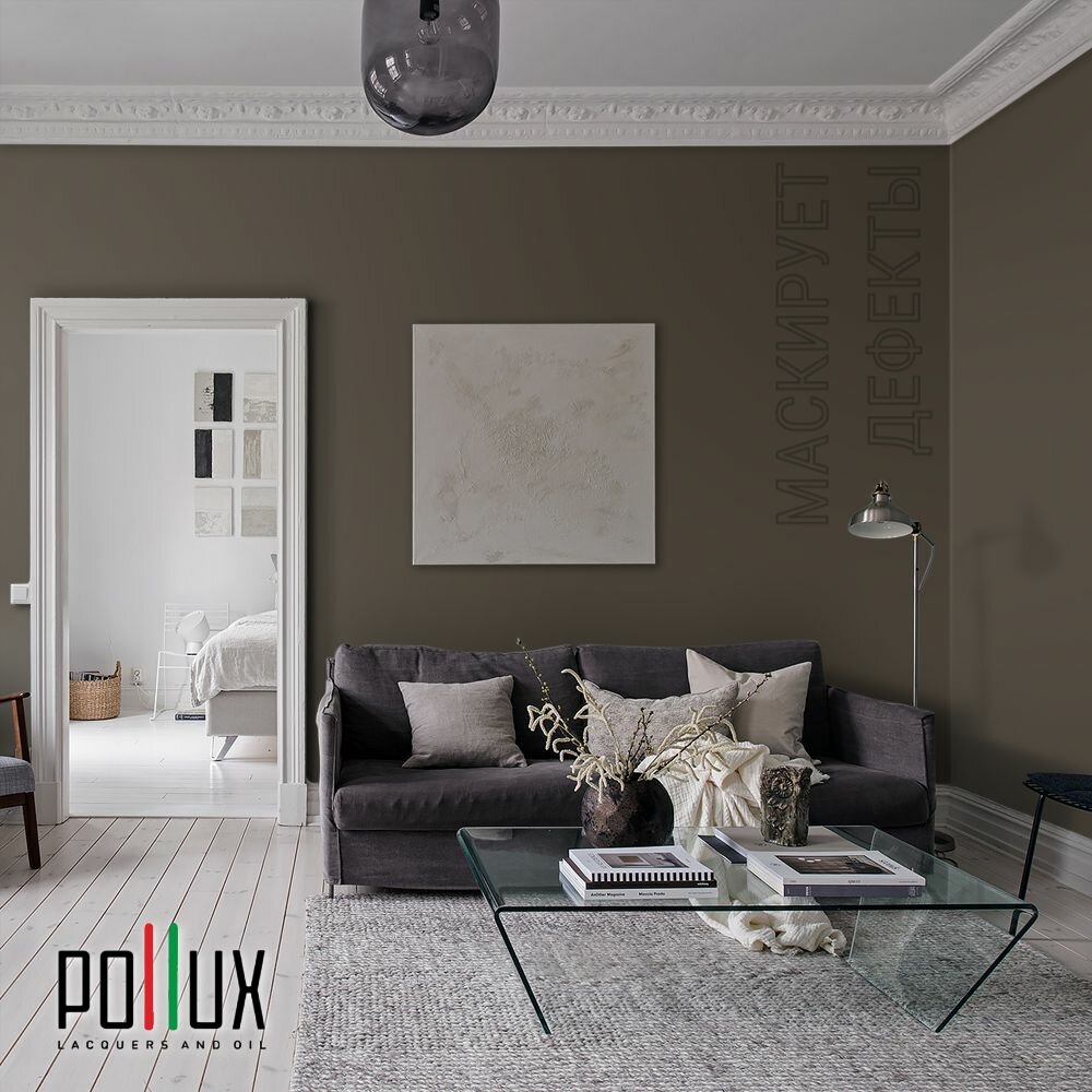 Краска моющаяся интерьерная для стен и потолков, Pollux INTERIOR без запаха, быстросохнущая, акриловая, матовое покрытие, цвет NCS S 7020-Y20R, 1л.