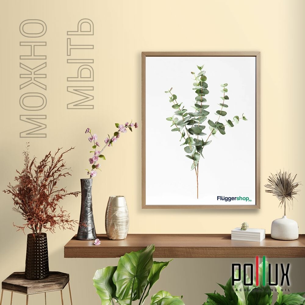 Краска моющаяся интерьерная для стен и потолков, Pollux INTERIOR без запаха, быстросохнущая, акриловая, матовое покрытие, цвет NCS S 1080-Y20R, 1л.