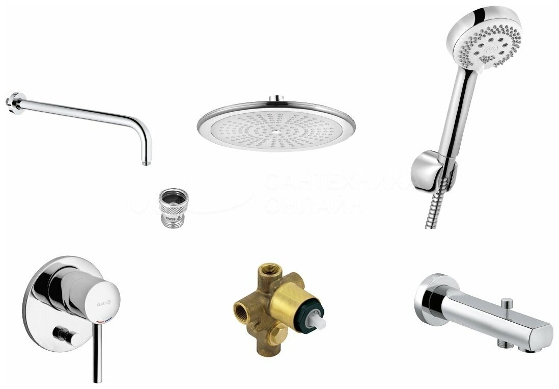 Готовые встраиваемые наборы для ванны (с изливом) Kludi Bozz, арт. 386310576, 3 режима, 25 см, round, 3 функции