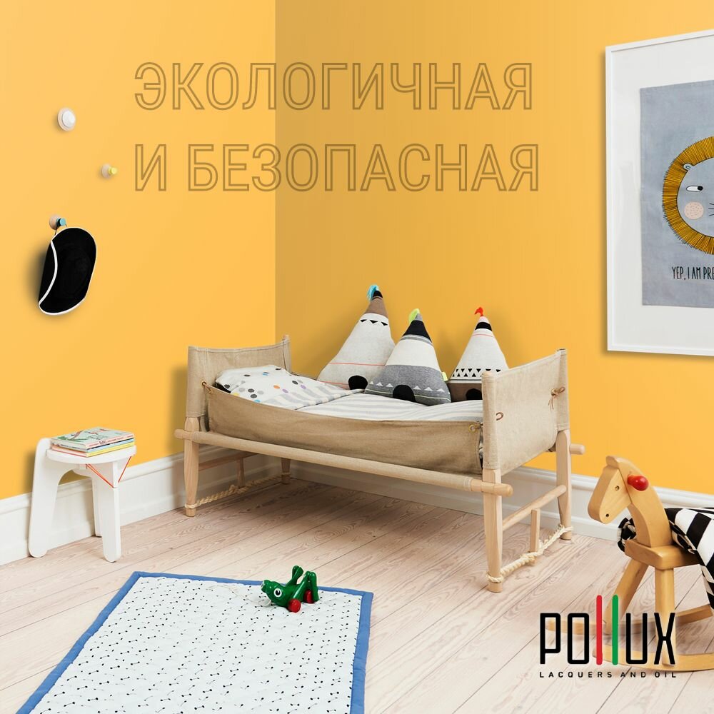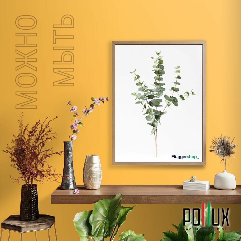 Краска моющаяся интерьерная для стен и потолков, Pollux INTERIOR без запаха, быстросохнущая, акриловая, матовое покрытие, цвет NCS S 1080-Y20R, 1л.