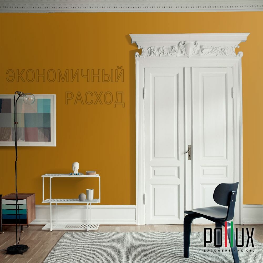 Краска моющаяся интерьерная для стен и потолков, Pollux INTERIOR без запаха, быстросохнущая, акриловая, матовое покрытие, цвет NCS S 1080-Y20R, 1л.