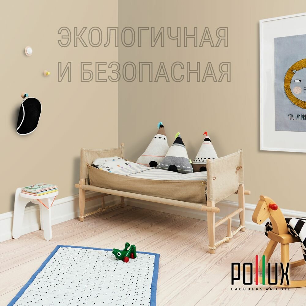 Краска моющаяся интерьерная для стен и потолков, Pollux INTERIOR без запаха, быстросохнущая, акриловая, матовое покрытие, цвет NCS S 1510-Y20R, 1л.