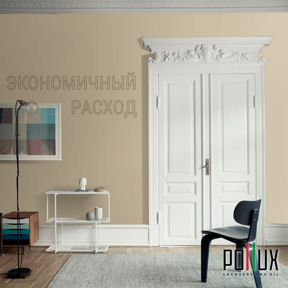 Краска моющаяся интерьерная для стен и потолков, Pollux INTERIOR без запаха, быстросохнущая, акриловая, матовое покрытие, цвет NCS S 1515-Y20R, 1л.