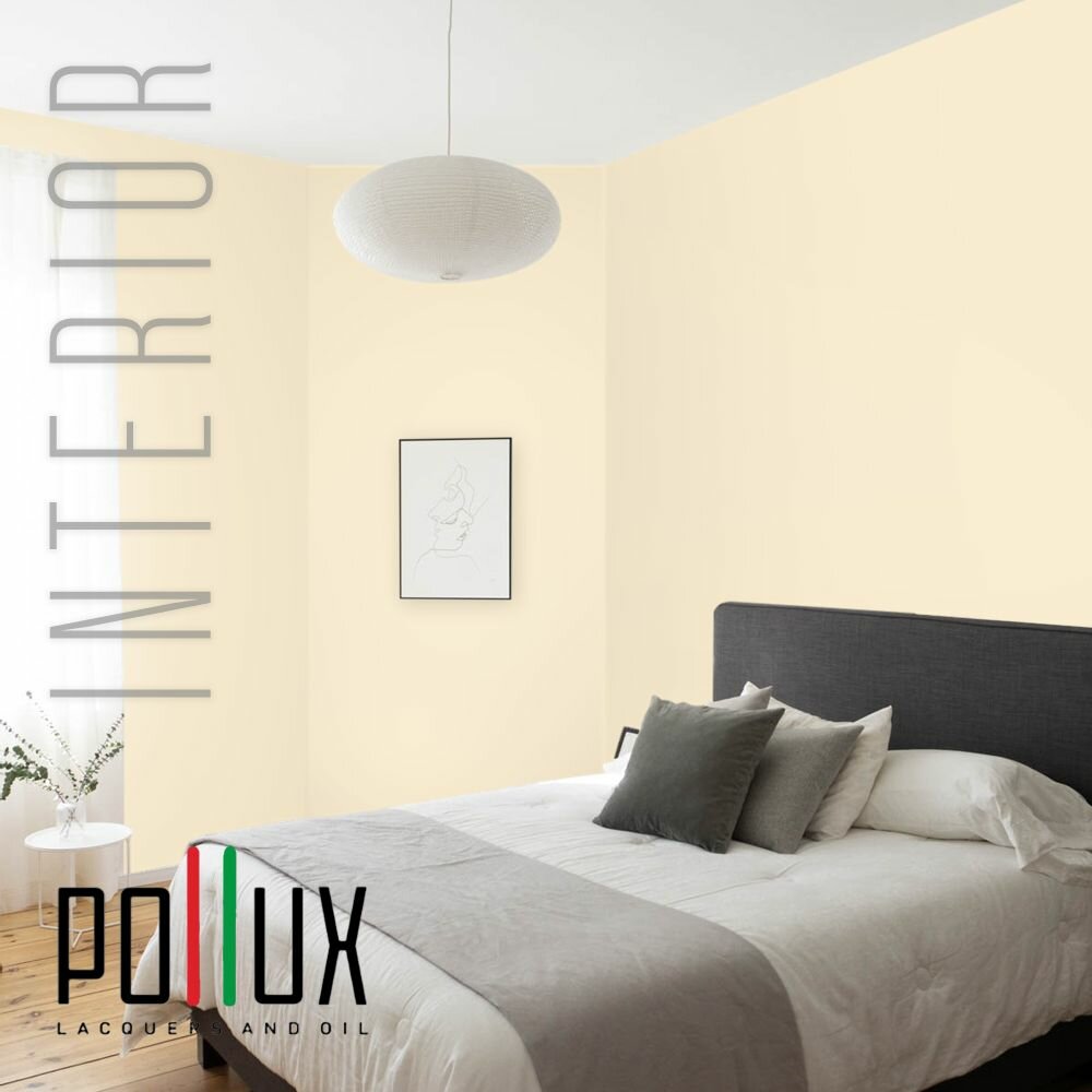 Краска моющаяся интерьерная для стен и потолков, Pollux INTERIOR без запаха, быстросохнущая, акриловая, матовое покрытие, цвет NCS S 0510-Y20R, 1л.