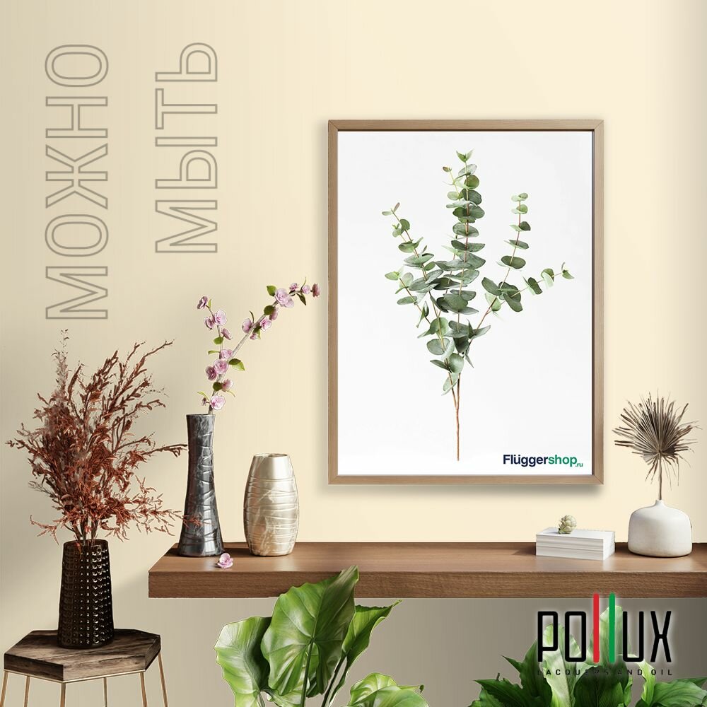 Краска моющаяся интерьерная для стен и потолков, Pollux INTERIOR без запаха, быстросохнущая, акриловая, матовое покрытие, цвет NCS S 3065-Y20R, 1л.
