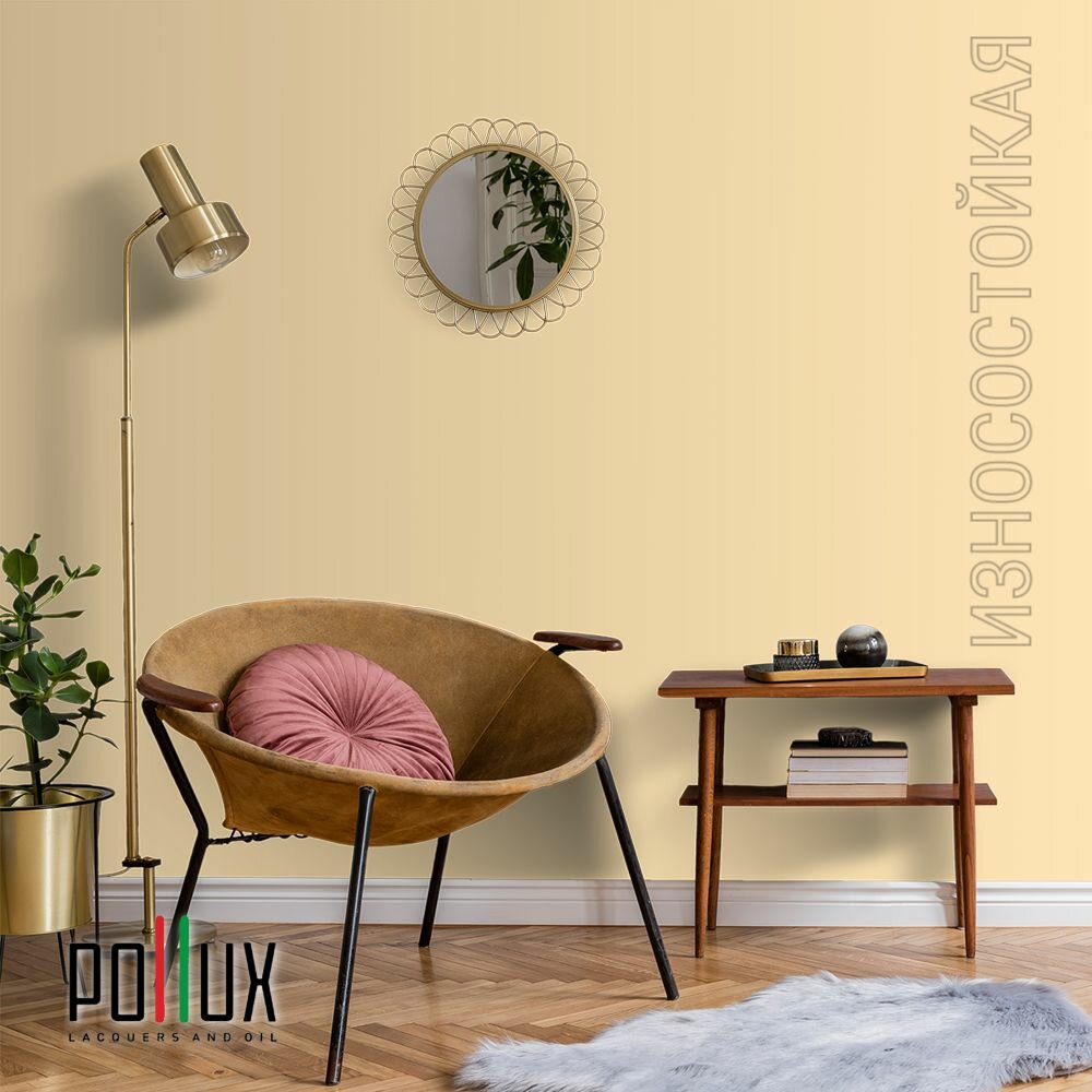 Краска моющаяся интерьерная для стен и потолков, Pollux INTERIOR без запаха, быстросохнущая, акриловая, матовое покрытие, цвет NCS S 6030-Y20R, 1л.