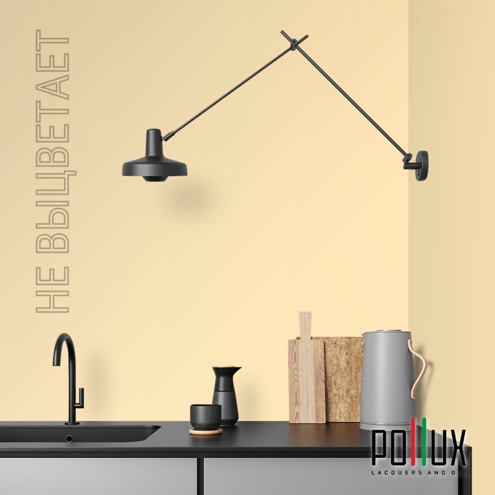 Краска моющаяся интерьерная для стен и потолков, Pollux INTERIOR без запаха, быстросохнущая, акриловая, матовое покрытие, цвет NCS S 1510-Y20R, 1л.