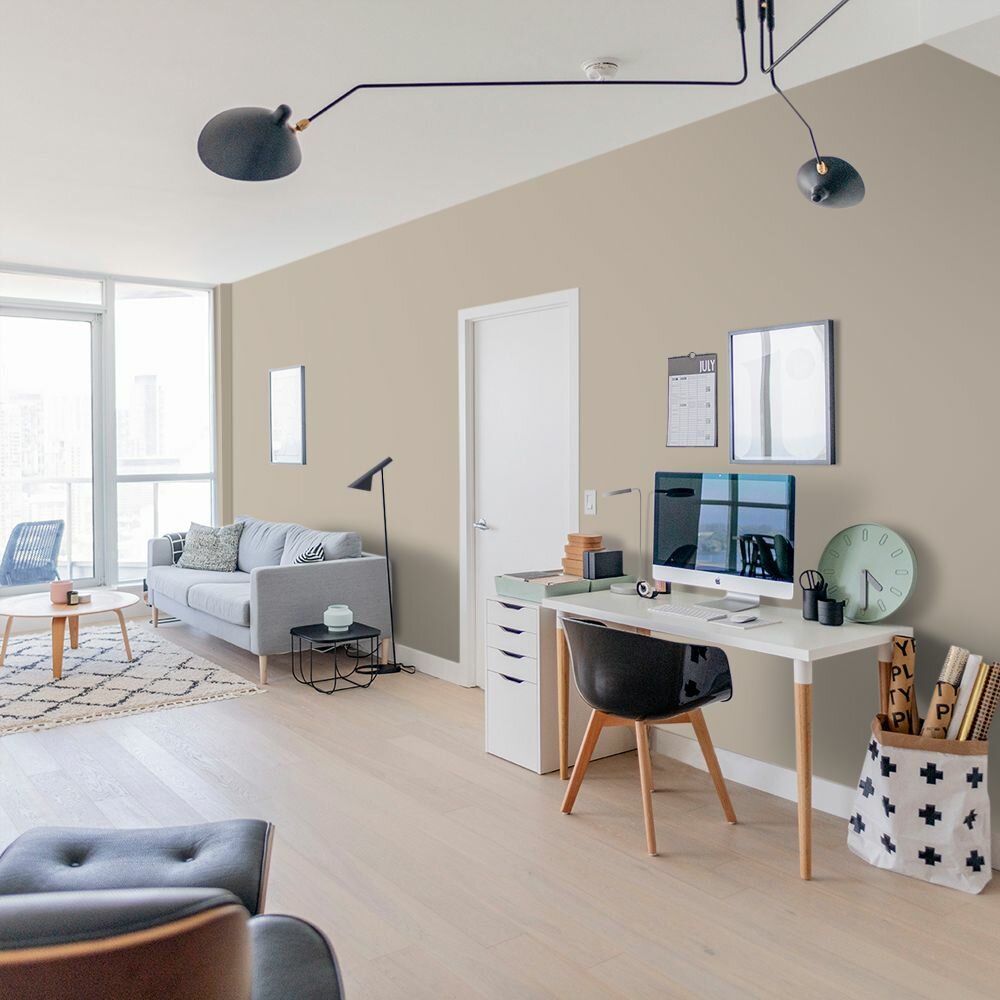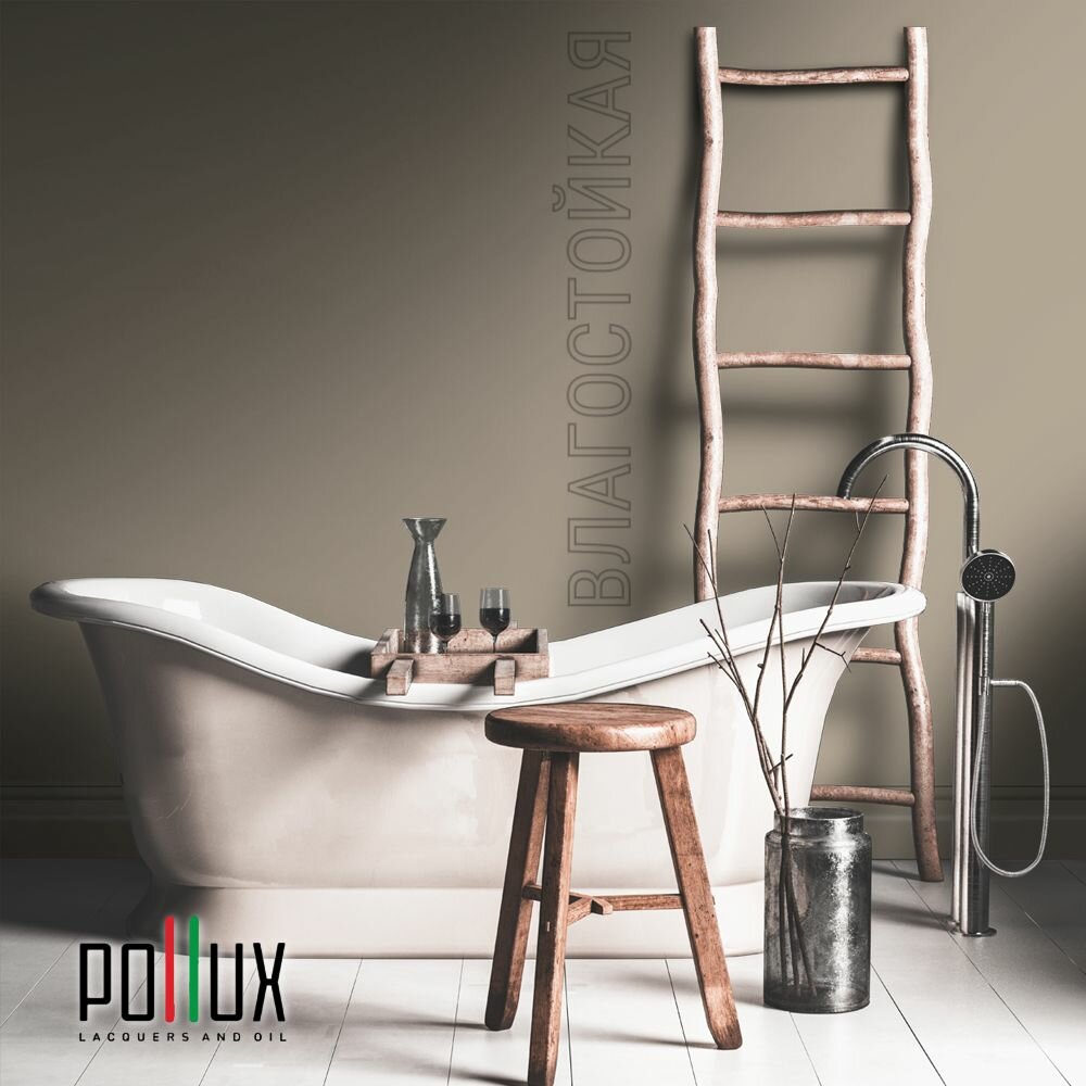 Краска моющаяся интерьерная для стен и потолков, Pollux INTERIOR без запаха, быстросохнущая, акриловая, матовое покрытие, цвет NCS S 7020-Y20R, 1л.