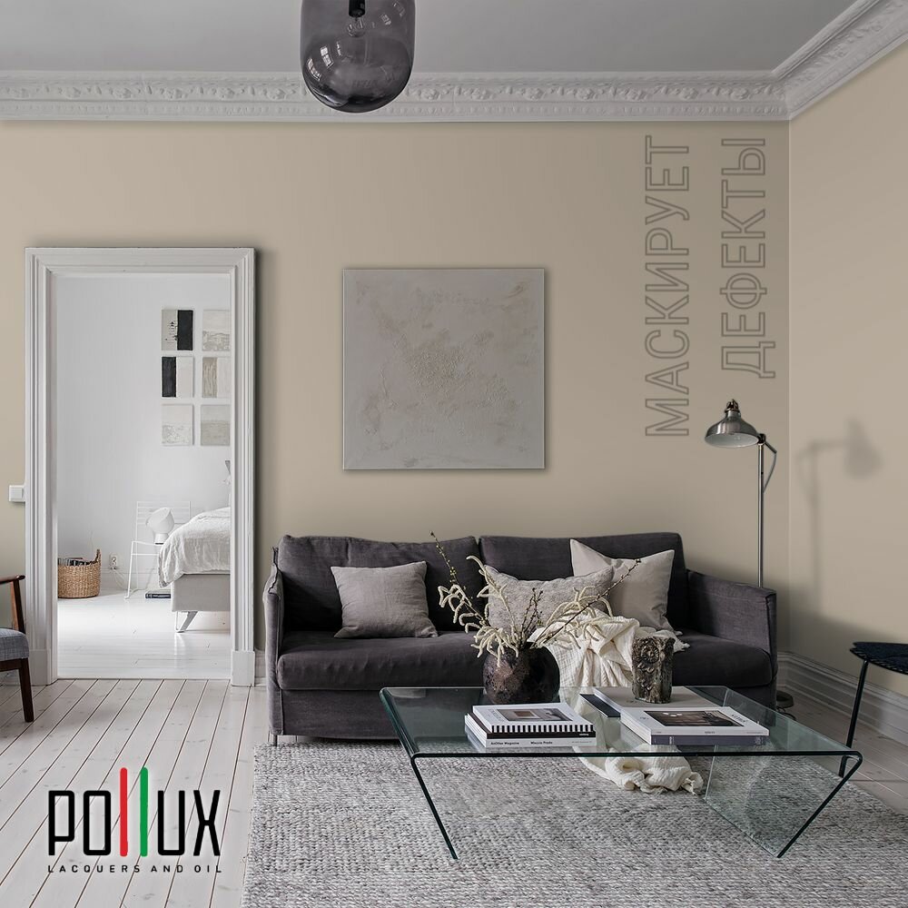 Краска моющаяся интерьерная для стен и потолков, Pollux INTERIOR без запаха, быстросохнущая, акриловая, матовое покрытие, цвет NCS S 1015-Y20R, 1л.
