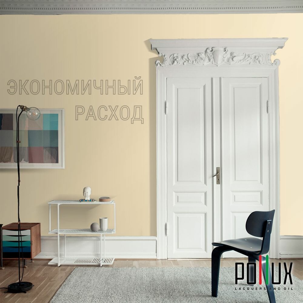 Краска моющаяся интерьерная для стен и потолков, Pollux INTERIOR без запаха, быстросохнущая, акриловая, матовое покрытие, цвет NCS S 0510-Y20R, 1л.