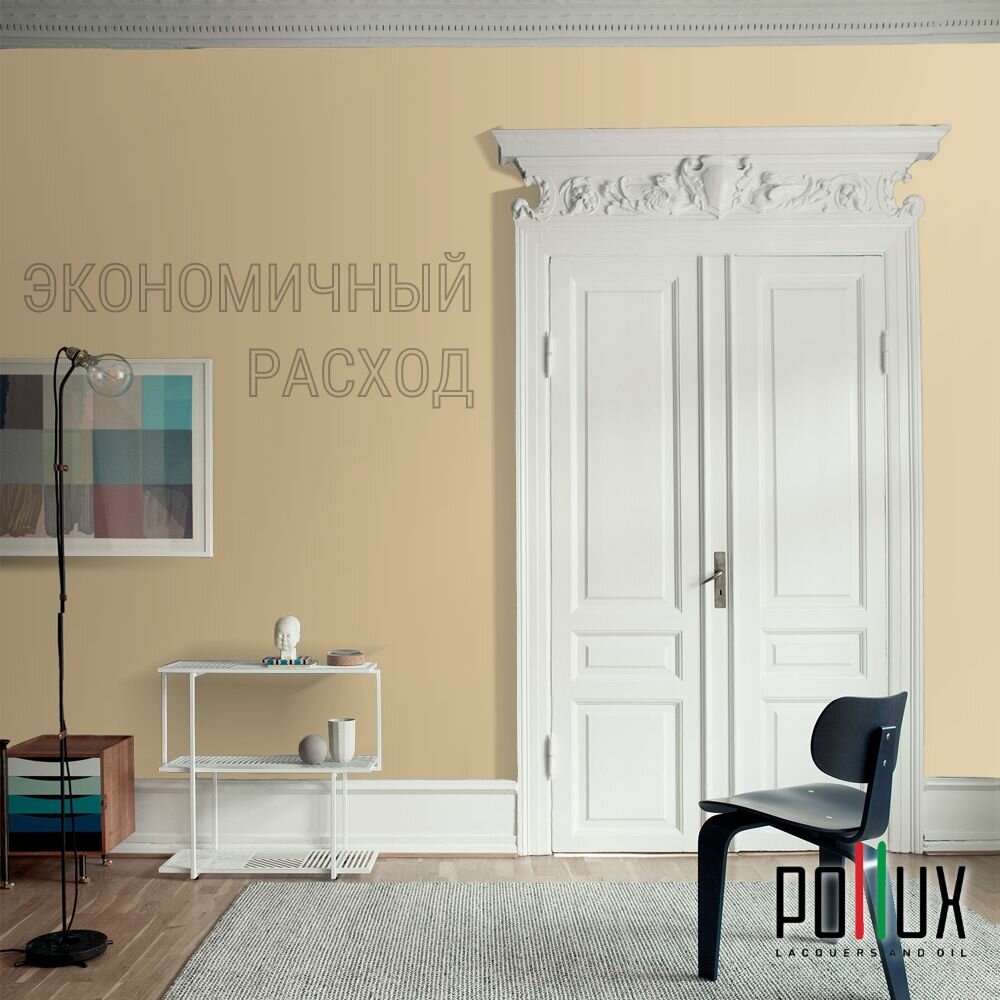 Краска моющаяся интерьерная для стен и потолков, Pollux INTERIOR без запаха, быстросохнущая, акриловая, матовое покрытие, цвет NCS S 1040-Y20R, 1л.