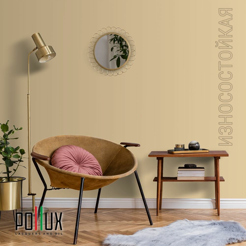 Краска моющаяся интерьерная для стен и потолков, Pollux INTERIOR без запаха, быстросохнущая, акриловая, матовое покрытие, цвет NCS S 0585-Y20R, 1л.