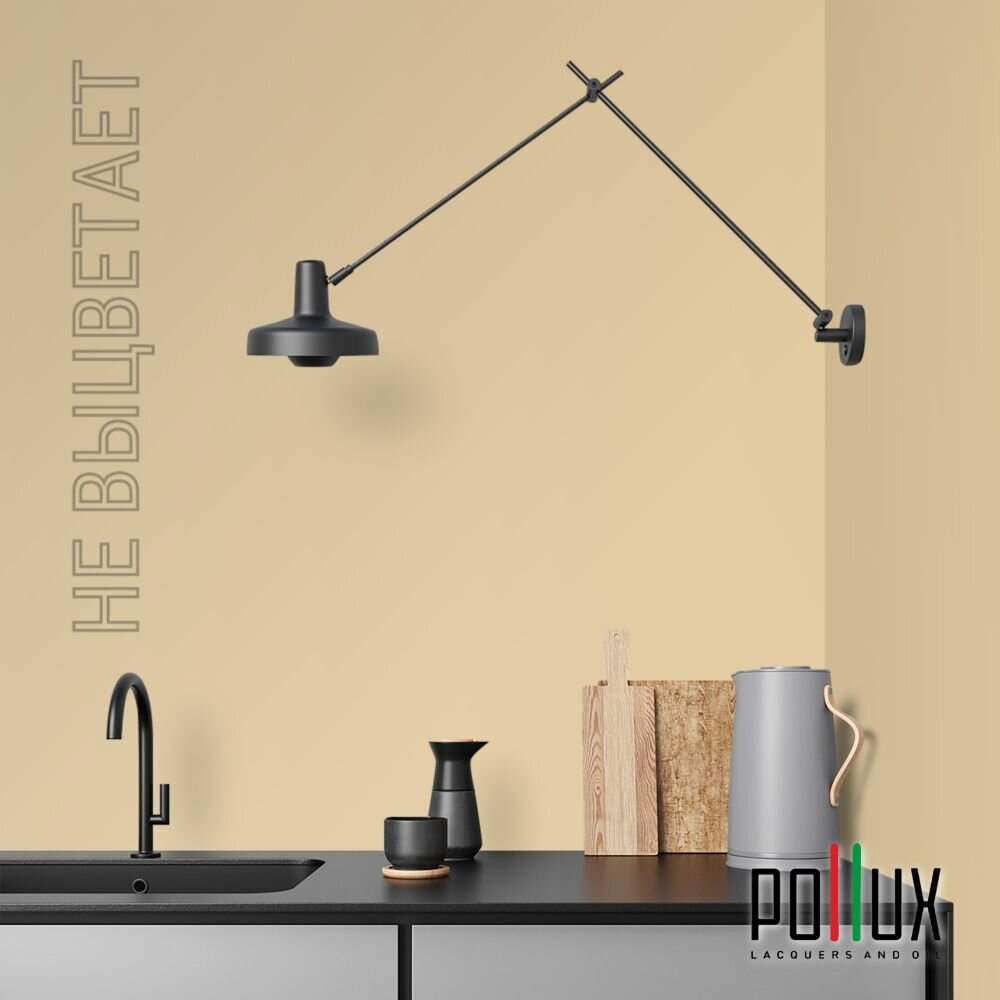 Краска моющаяся интерьерная для стен и потолков, Pollux INTERIOR без запаха, быстросохнущая, акриловая, матовое покрытие, цвет NCS S 1510-Y20R, 1л.