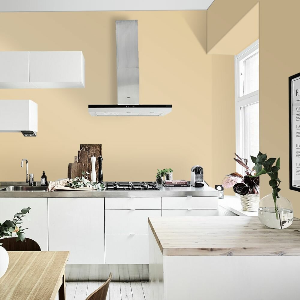 Краска моющаяся интерьерная для стен и потолков, Pollux INTERIOR без запаха, быстросохнущая, акриловая, матовое покрытие, цвет NCS S 0530-Y20R, 1л.