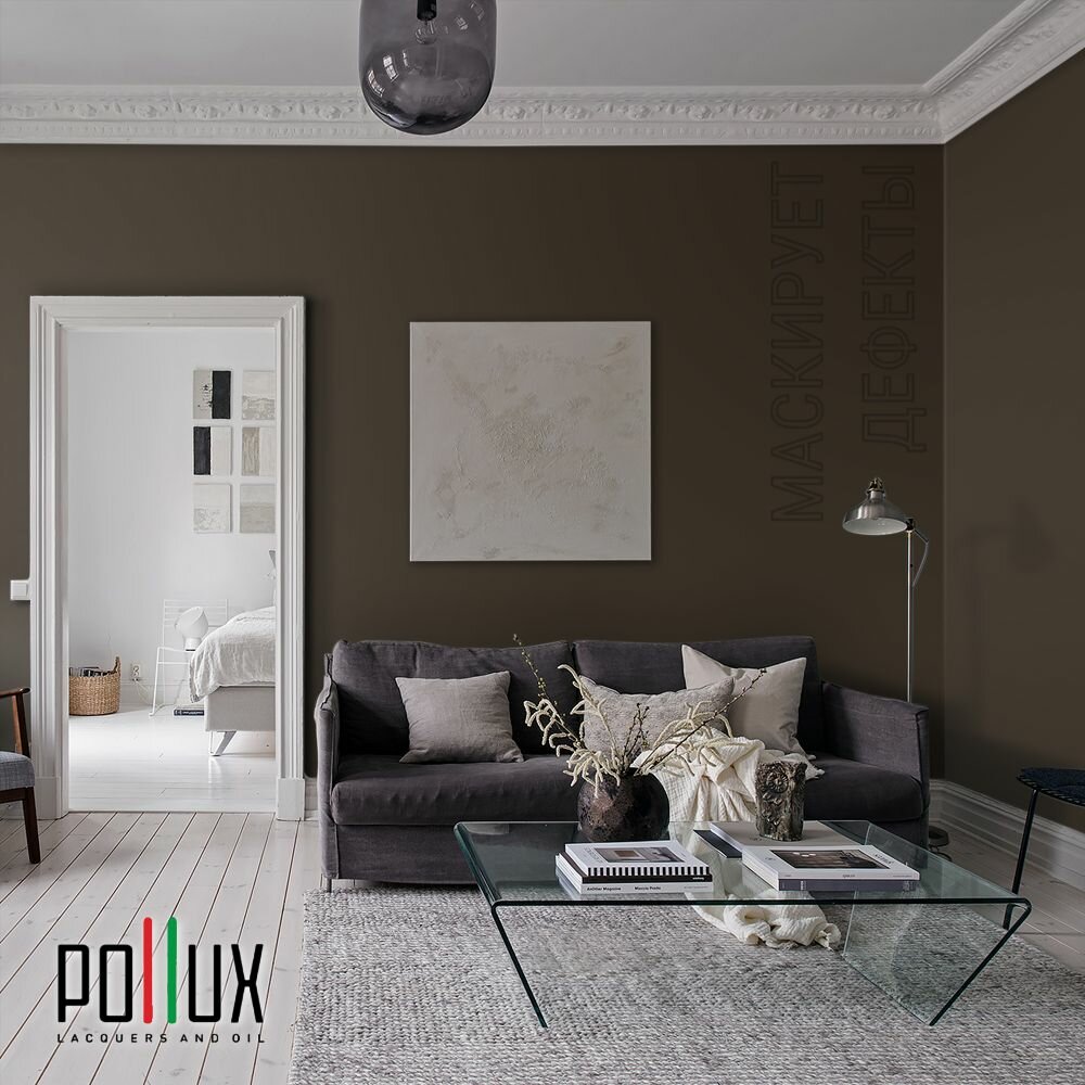 Краска моющаяся интерьерная для стен и потолков, Pollux INTERIOR без запаха, быстросохнущая, акриловая, матовое покрытие, цвет NCS S 7020-Y20R, 1л.