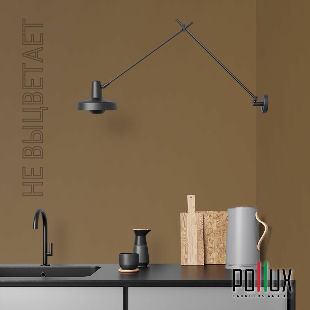 Краска моющаяся интерьерная для стен и потолков, Pollux INTERIOR без запаха, быстросохнущая, акриловая, матовое покрытие, цвет NCS S 3010-Y20R, 1л.