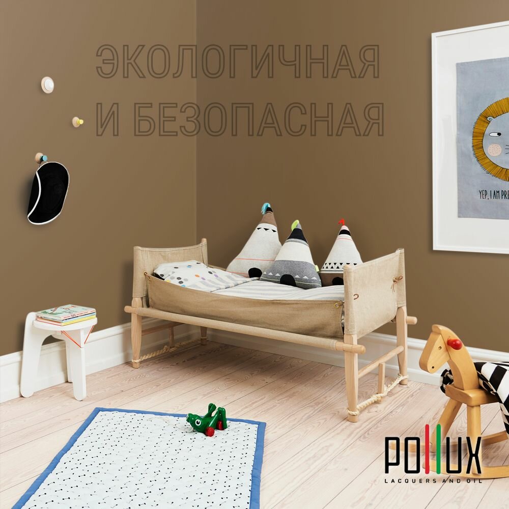 Краска моющаяся интерьерная для стен и потолков, Pollux INTERIOR без запаха, быстросохнущая, акриловая, матовое покрытие, цвет NCS S 4050-Y20R, 1л.