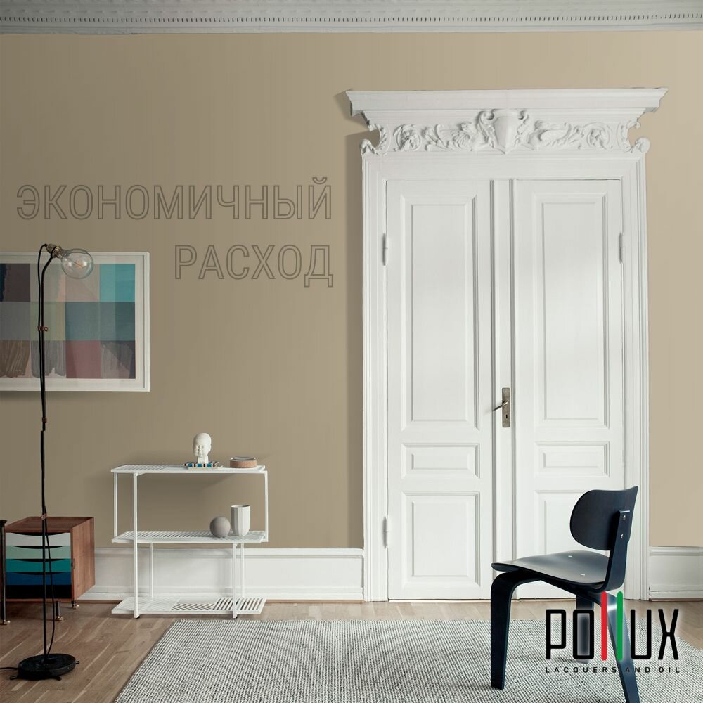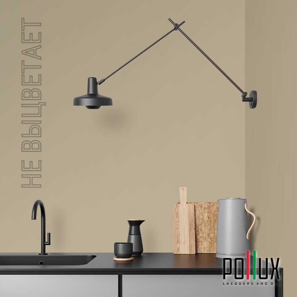 Краска моющаяся интерьерная для стен и потолков, Pollux INTERIOR без запаха, быстросохнущая, акриловая, матовое покрытие, цвет NCS S 7020-Y20R, 1л.