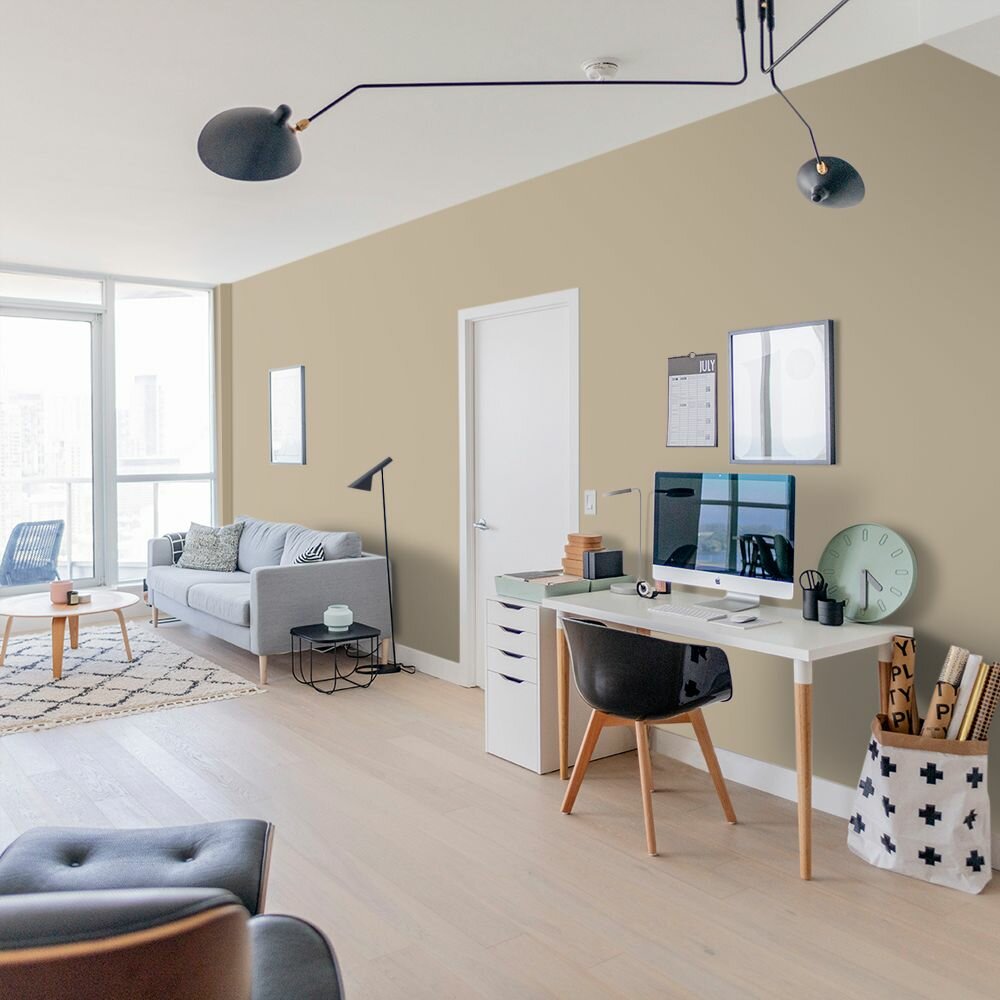 Краска моющаяся интерьерная для стен и потолков, Pollux INTERIOR без запаха, быстросохнущая, акриловая, матовое покрытие, цвет NCS S 1515-Y20R, 1л.