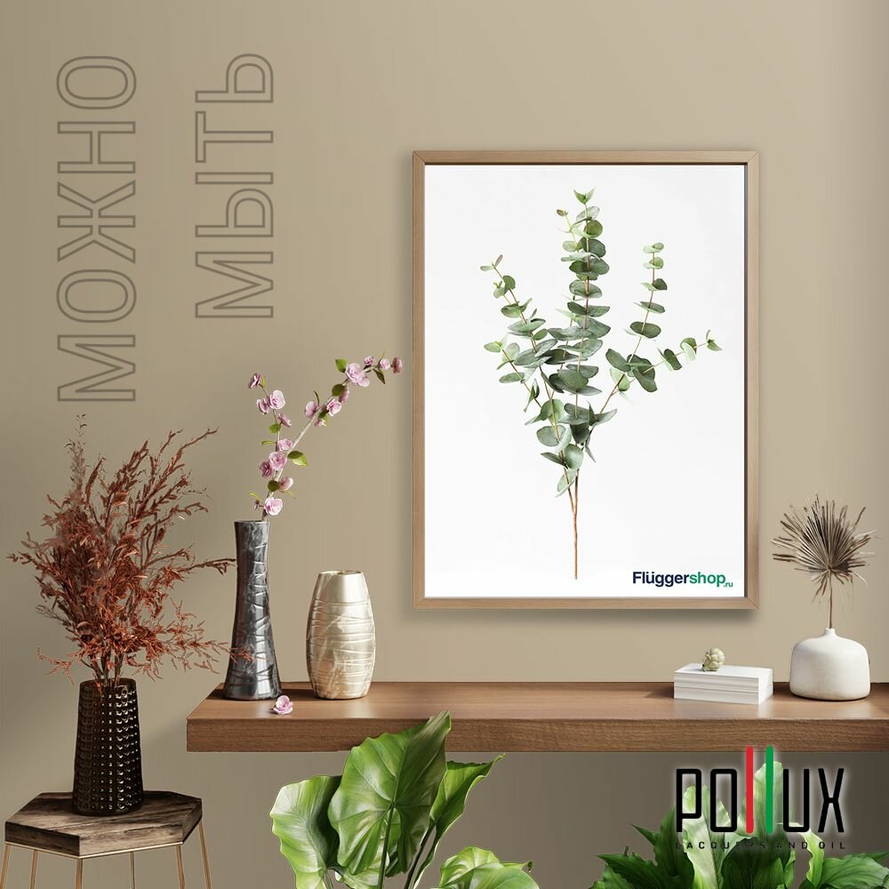 Краска моющаяся интерьерная для стен и потолков, Pollux INTERIOR без запаха, быстросохнущая, акриловая, матовое покрытие, цвет NCS S 7005-Y20R, 1л.