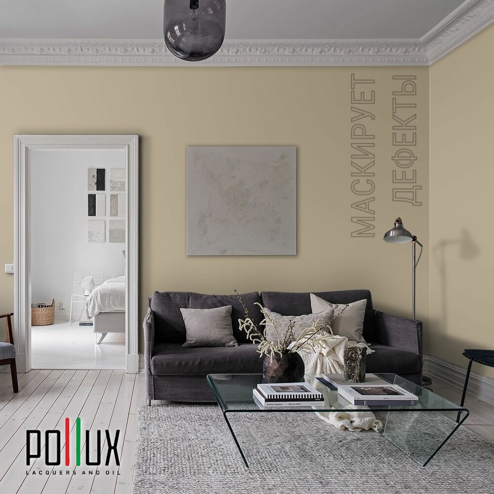 Краска моющаяся интерьерная для стен и потолков, Pollux INTERIOR без запаха, быстросохнущая, акриловая, матовое покрытие, цвет NCS S 0507-Y20R, 1л.