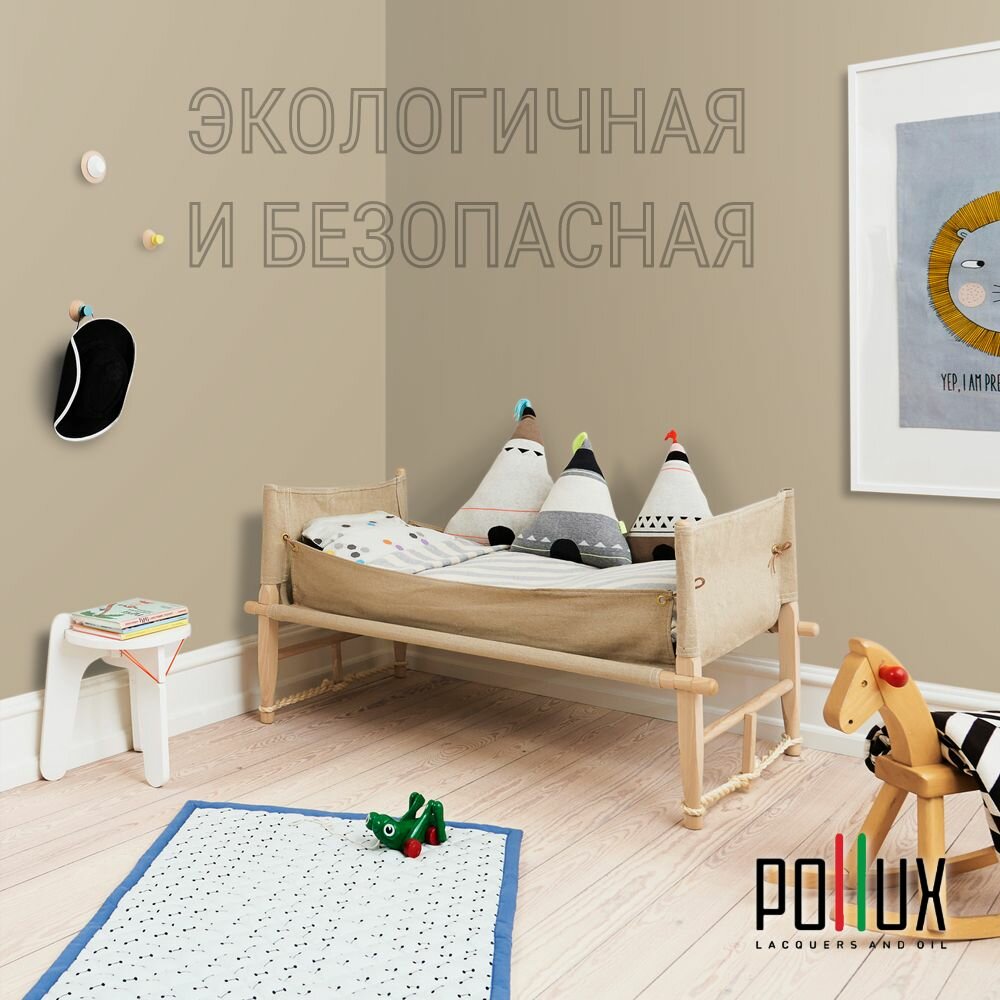 Краска моющаяся интерьерная для стен и потолков, Pollux INTERIOR без запаха, быстросохнущая, акриловая, матовое покрытие, цвет NCS S 4040-Y20R, 1л.
