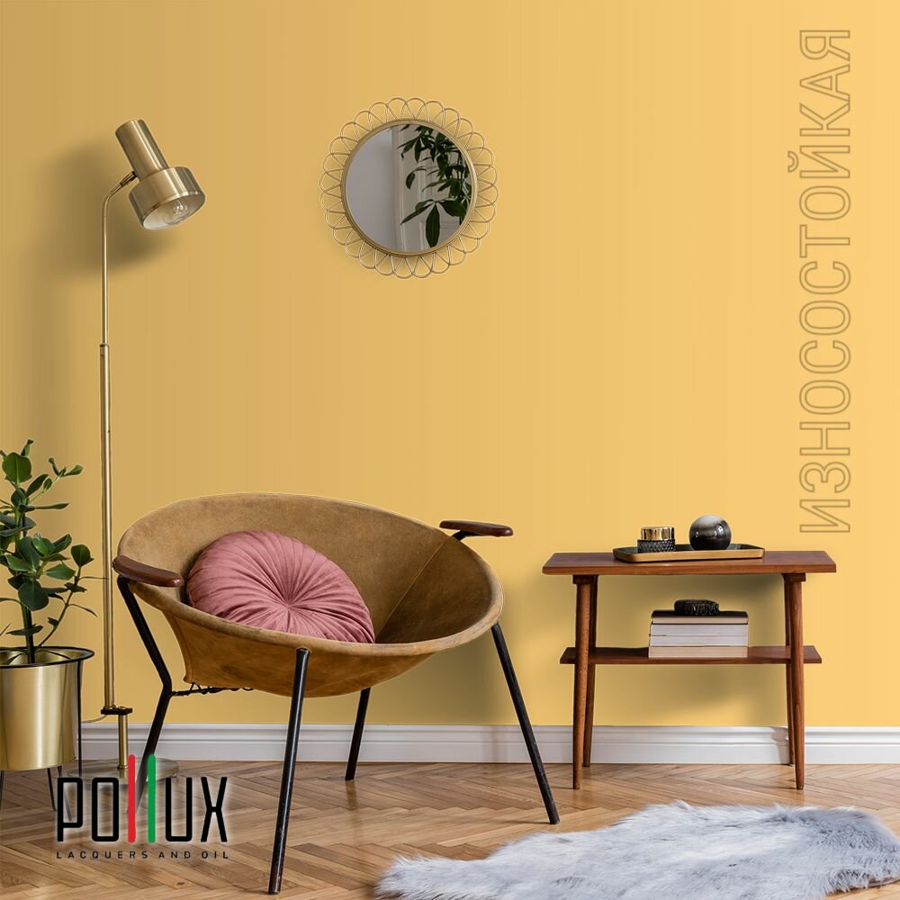 Краска моющаяся интерьерная для стен и потолков, Pollux INTERIOR без запаха, быстросохнущая, акриловая, матовое покрытие, цвет NCS S 0585-Y20R, 1л.