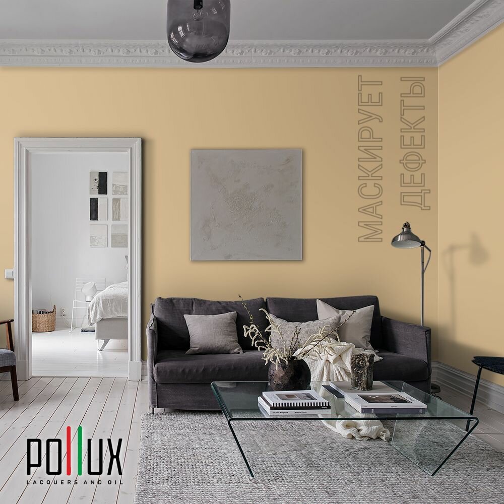 Краска моющаяся интерьерная для стен и потолков, Pollux INTERIOR без запаха, быстросохнущая, акриловая, матовое покрытие, цвет NCS S 3010-Y20R, 1л.