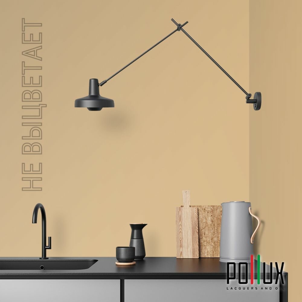 Краска моющаяся интерьерная для стен и потолков, Pollux INTERIOR без запаха, быстросохнущая, акриловая, матовое покрытие, цвет NCS S 0585-Y20R, 1л.