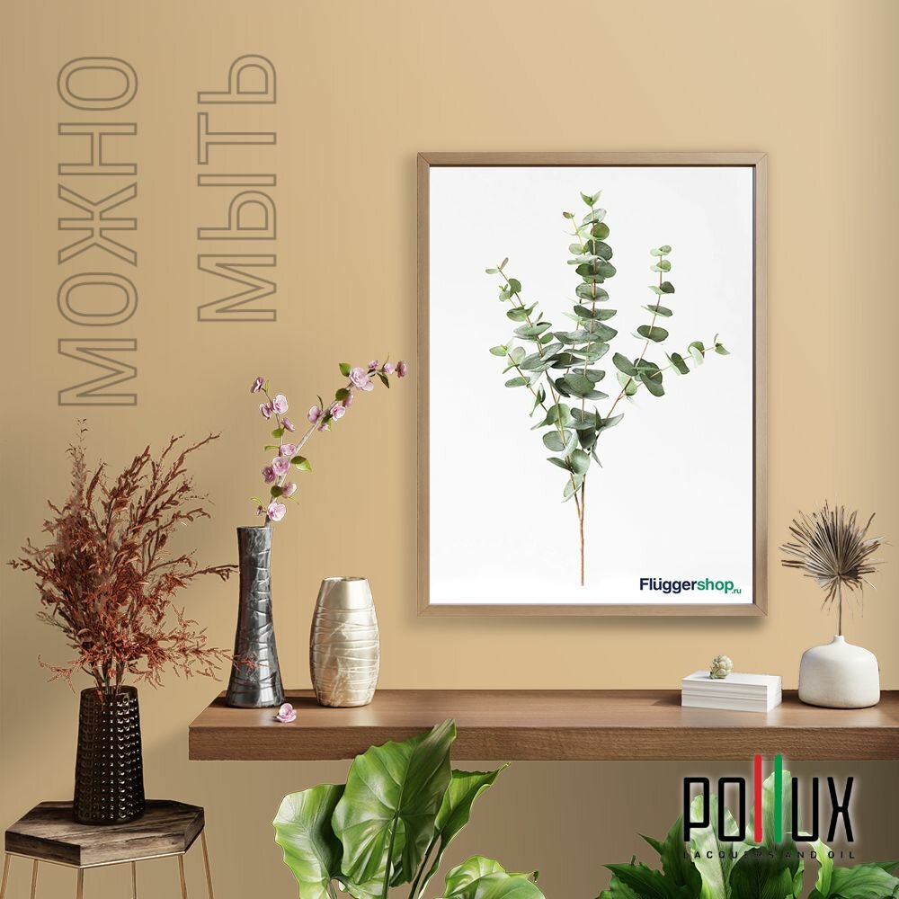 Краска моющаяся интерьерная для стен и потолков, Pollux INTERIOR без запаха, быстросохнущая, акриловая, матовое покрытие, цвет NCS S 3065-Y20R, 1л.