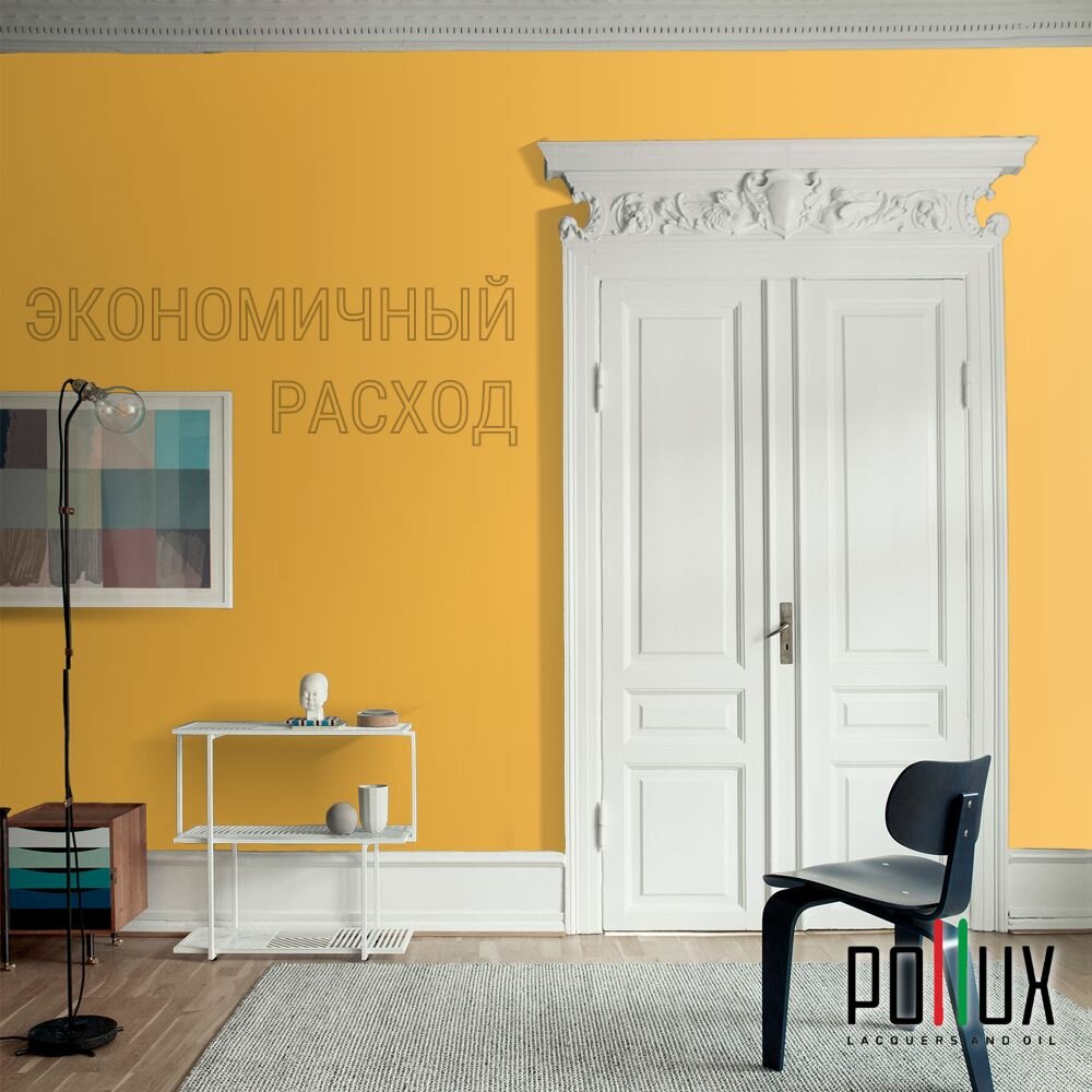 Краска моющаяся интерьерная для стен и потолков, Pollux INTERIOR без запаха, быстросохнущая, акриловая, матовое покрытие, цвет NCS S 1060-Y20R, 1л.