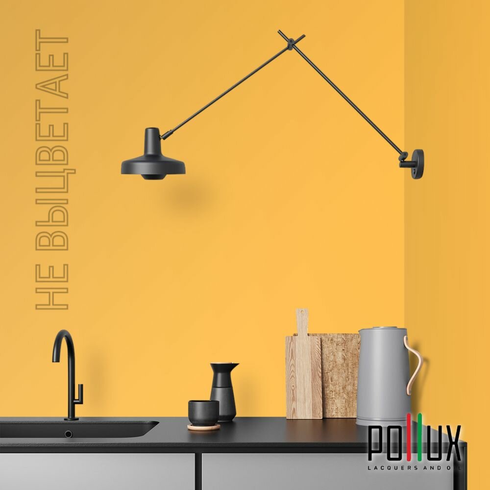 Краска моющаяся интерьерная для стен и потолков, Pollux INTERIOR без запаха, быстросохнущая, акриловая, матовое покрытие, цвет NCS S 1080-Y20R, 1л.