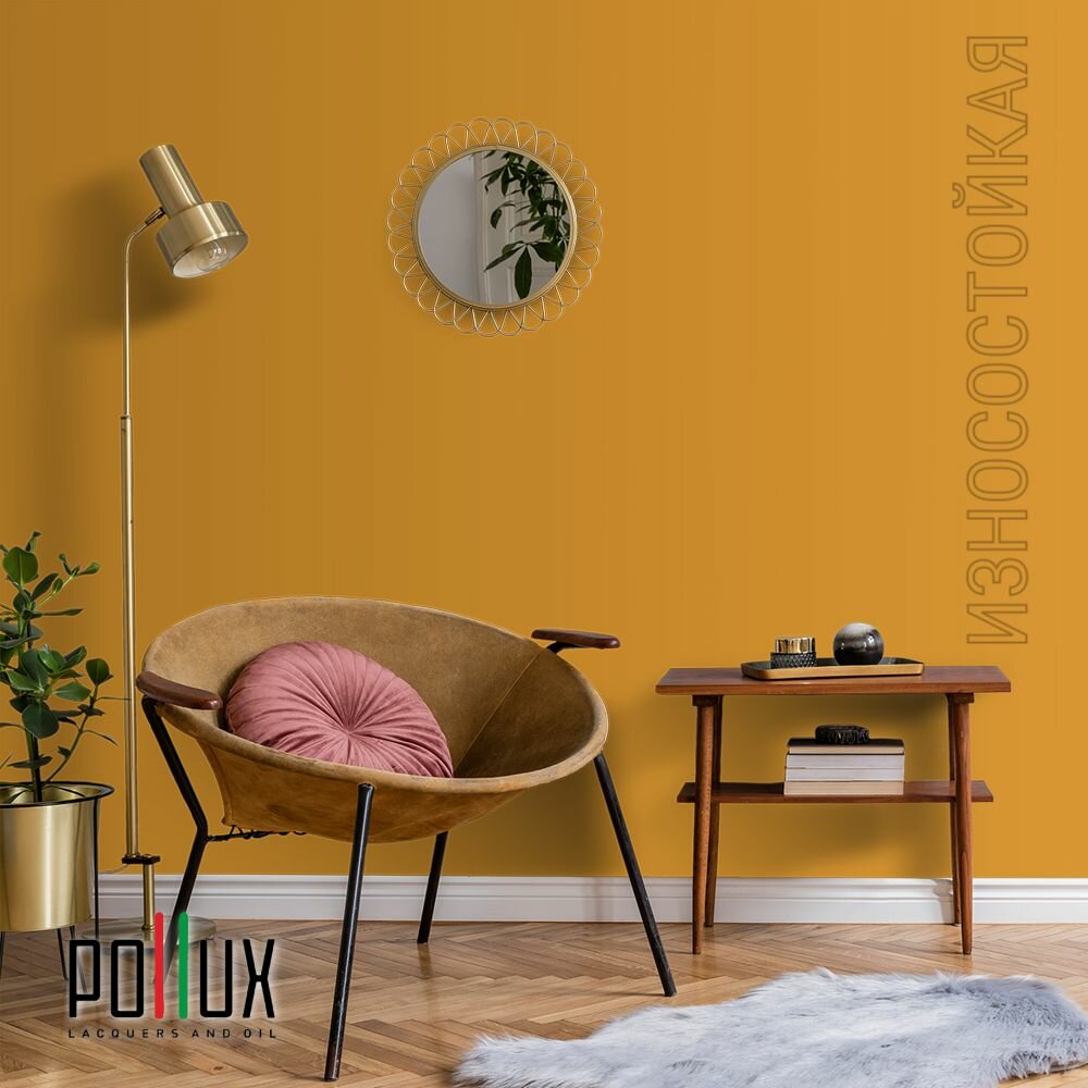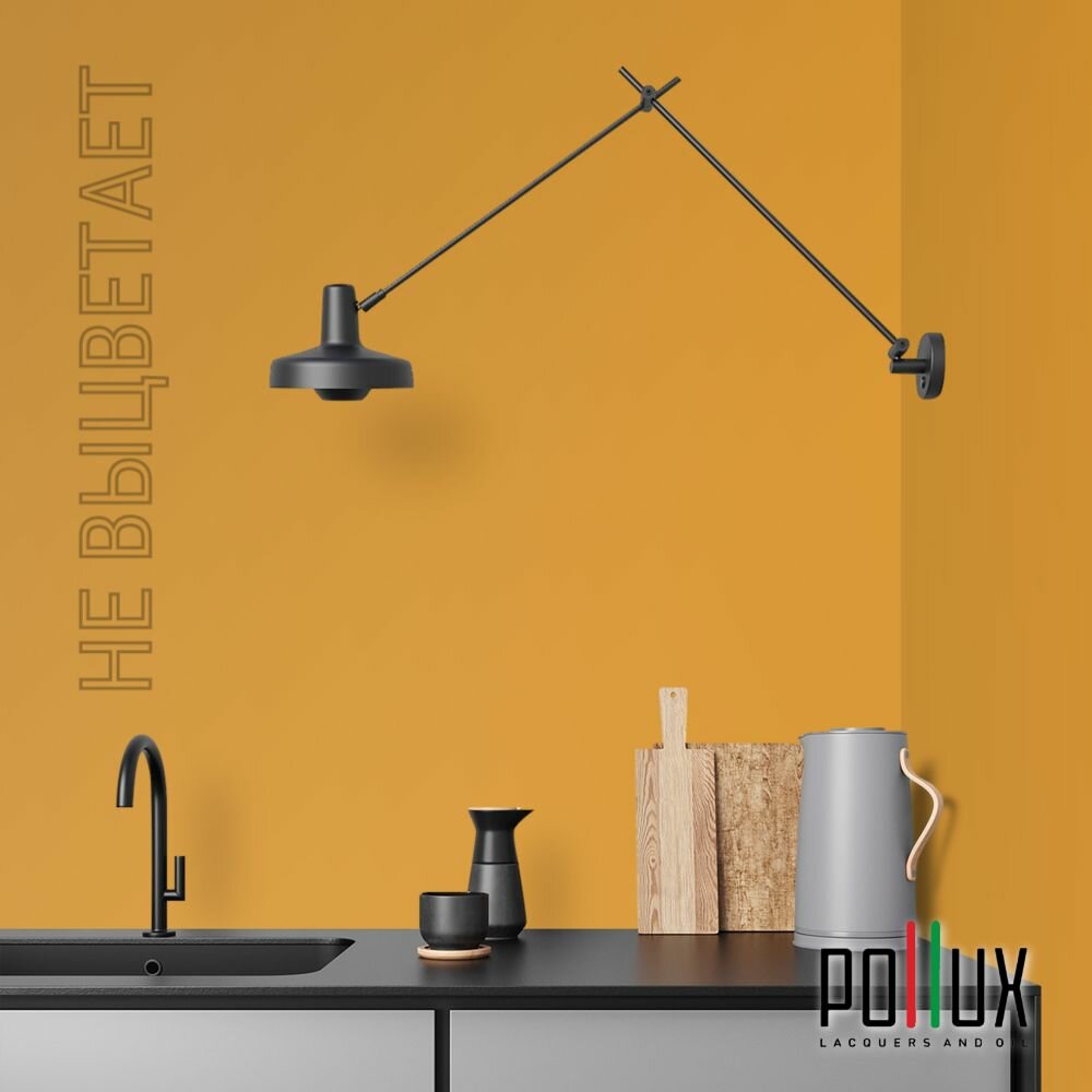 Краска моющаяся интерьерная для стен и потолков, Pollux INTERIOR без запаха, быстросохнущая, акриловая, матовое покрытие, цвет NCS S 6030-Y20R, 1л.