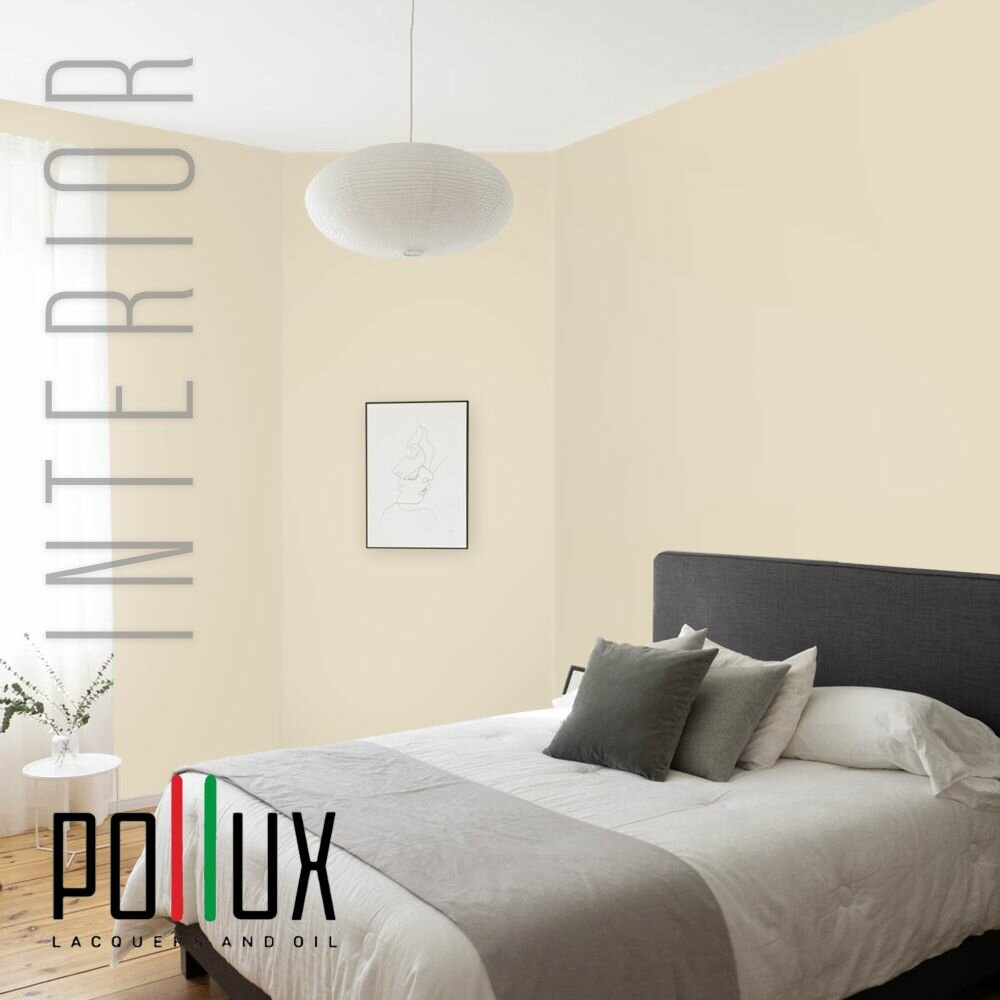 Краска моющаяся интерьерная для стен и потолков, Pollux INTERIOR без запаха, быстросохнущая, акриловая, матовое покрытие, цвет NCS S 0510-Y20R, 1л.