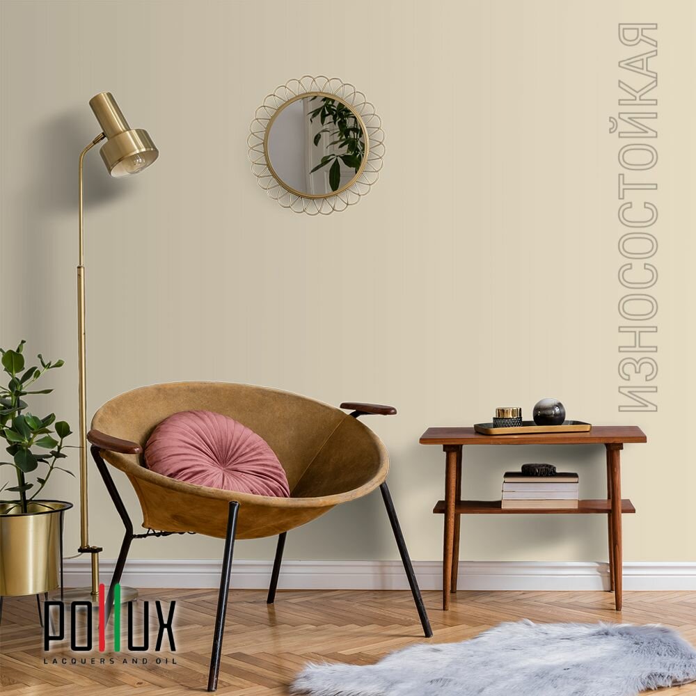 Краска моющаяся интерьерная для стен и потолков, Pollux INTERIOR без запаха, быстросохнущая, акриловая, матовое покрытие, цвет NCS S 0585-Y20R, 1л.
