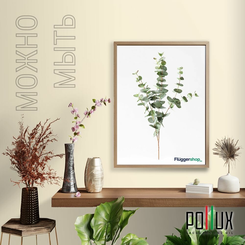 Краска моющаяся интерьерная для стен и потолков, Pollux INTERIOR без запаха, быстросохнущая, акриловая, матовое покрытие, цвет NCS S 4030-Y20R, 1л.