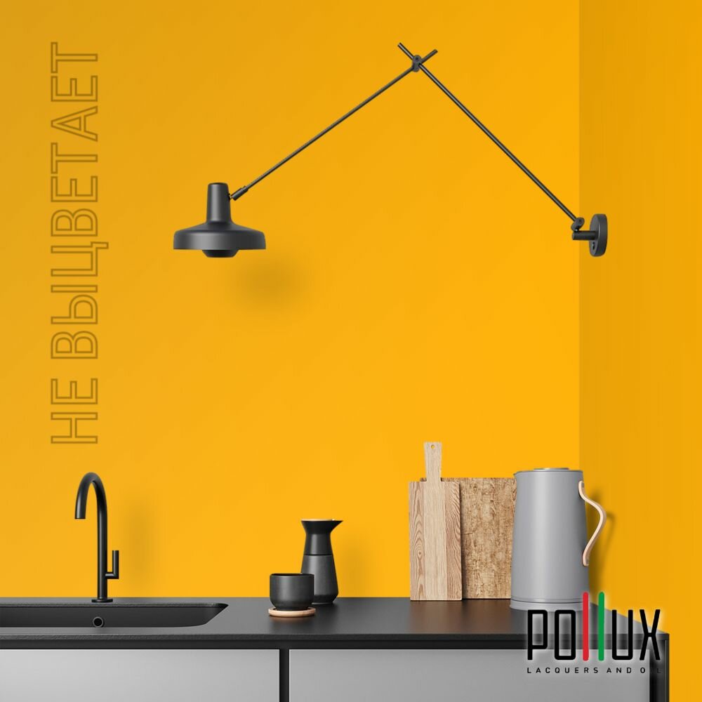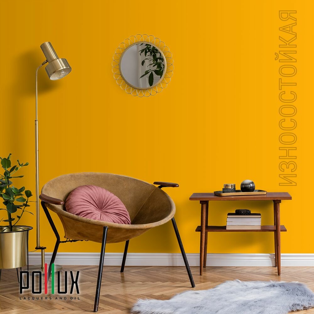 Краска моющаяся интерьерная для стен и потолков, Pollux INTERIOR без запаха, быстросохнущая, акриловая, матовое покрытие, цвет NCS S 6030-Y10R, 1л.