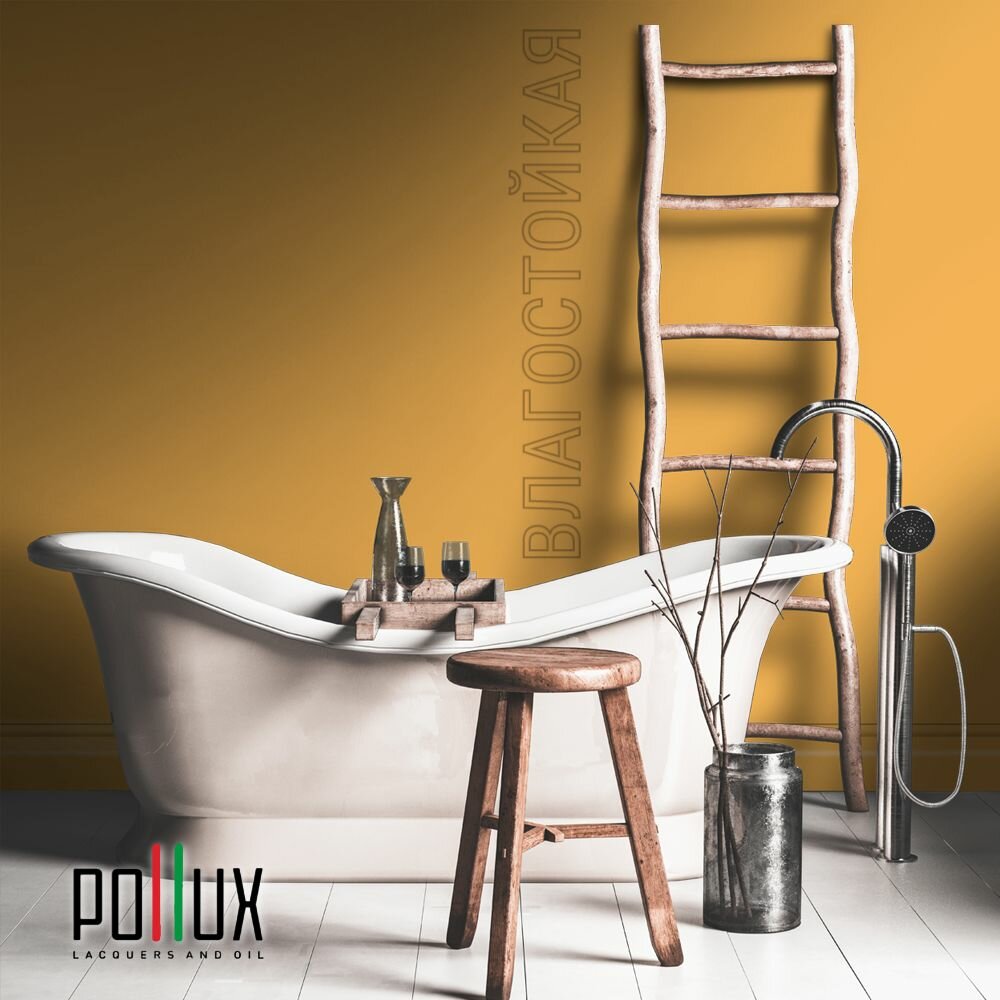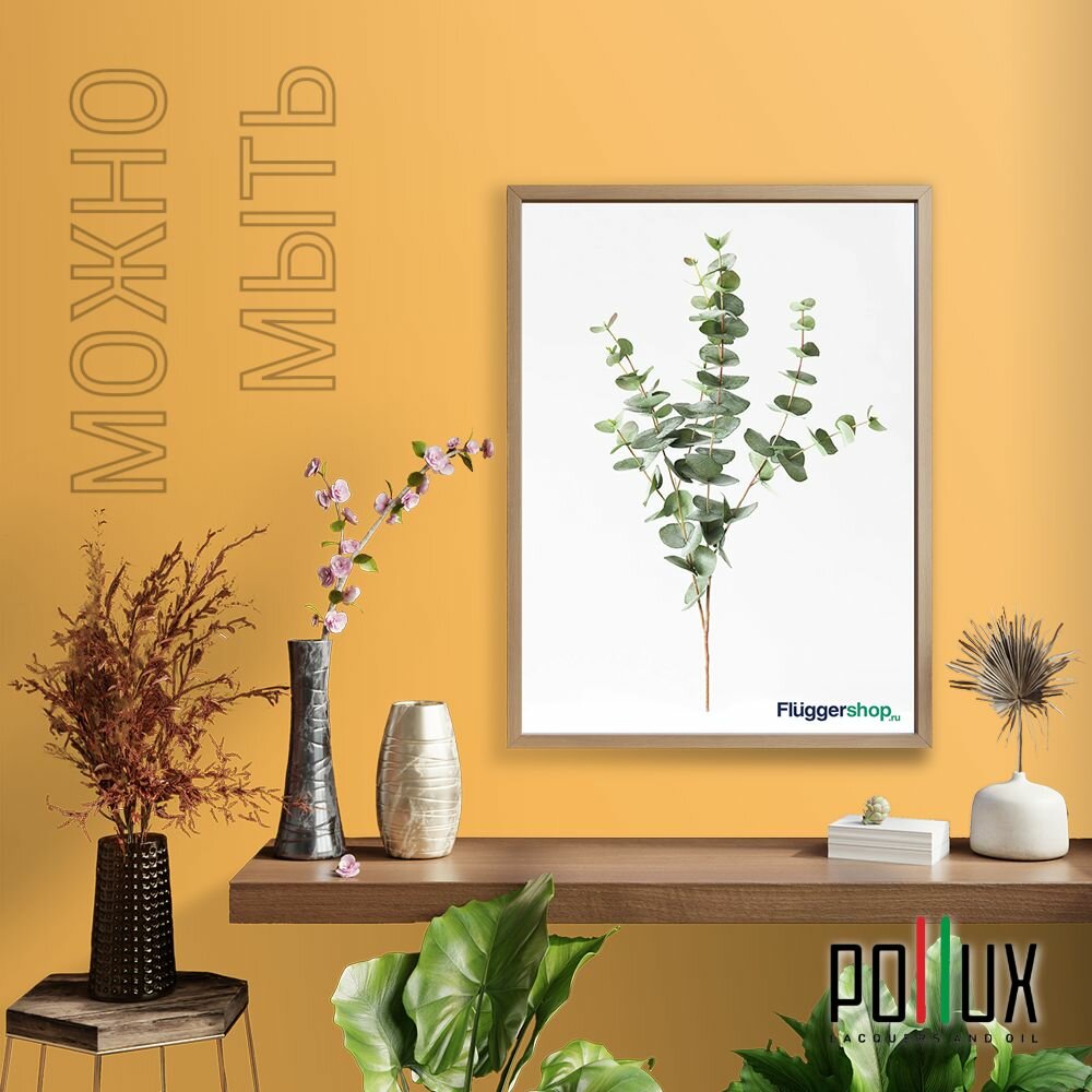 Краска моющаяся интерьерная для стен и потолков, Pollux INTERIOR без запаха, быстросохнущая, акриловая, матовое покрытие, цвет NCS S 1080-Y20R, 1л.