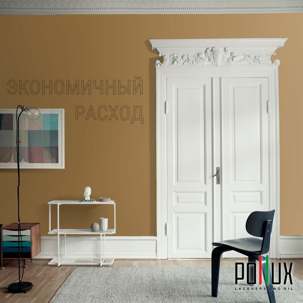 Краска моющаяся интерьерная для стен и потолков, Pollux INTERIOR без запаха, быстросохнущая, акриловая, матовое покрытие, цвет NCS S 1060-Y20R, 1л.