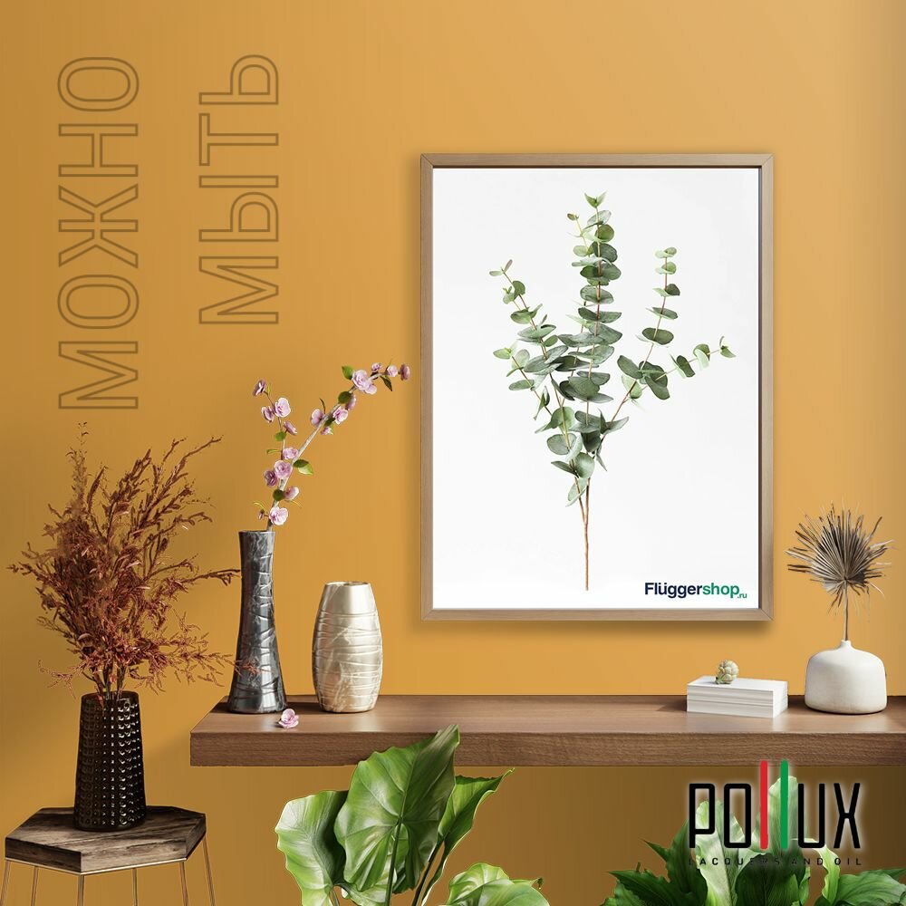 Краска моющаяся интерьерная для стен и потолков, Pollux INTERIOR без запаха, быстросохнущая, акриловая, матовое покрытие, цвет NCS S 1080-Y20R, 1л.