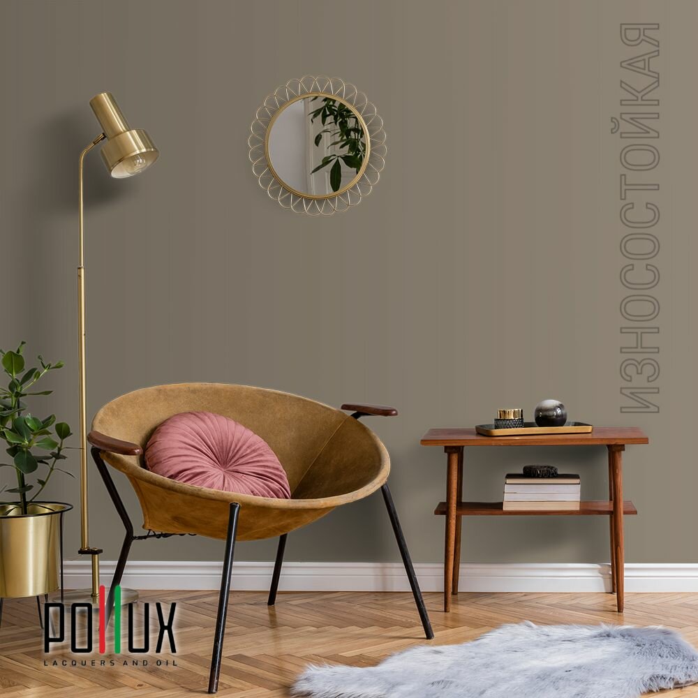 Краска моющаяся интерьерная для стен и потолков, Pollux INTERIOR без запаха, быстросохнущая, акриловая, матовое покрытие, цвет NCS S 7020-Y20R, 1л.